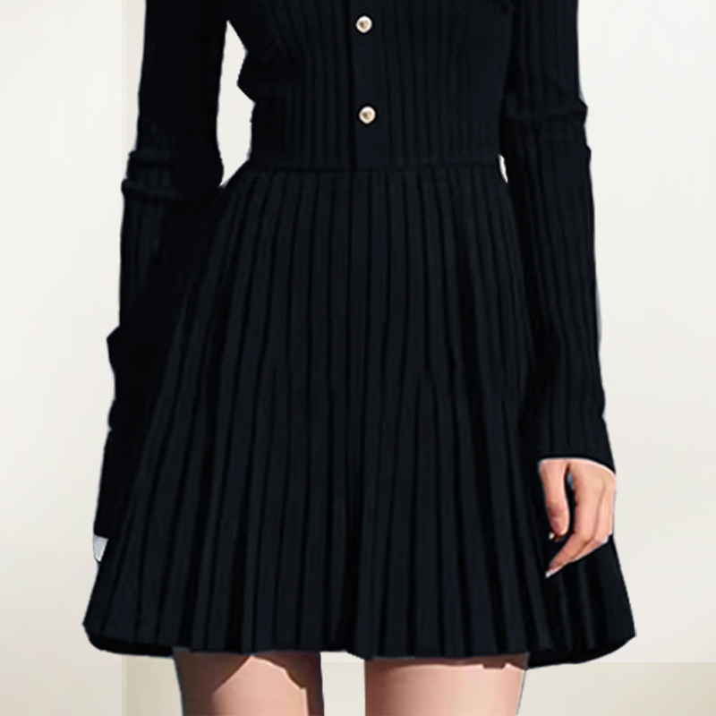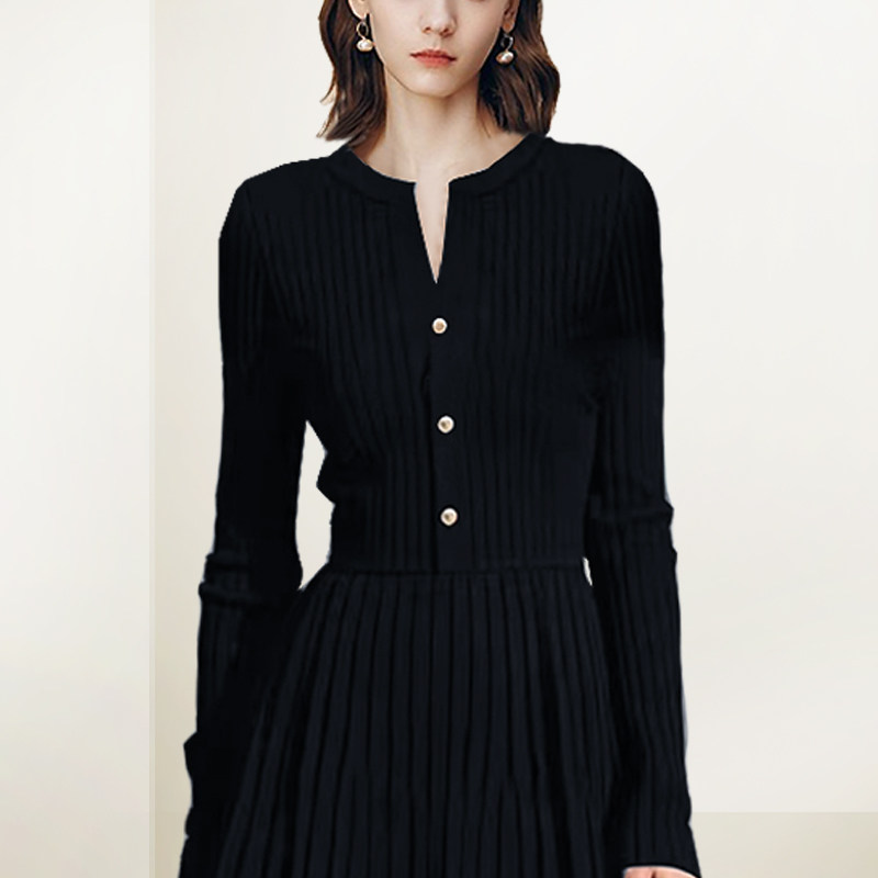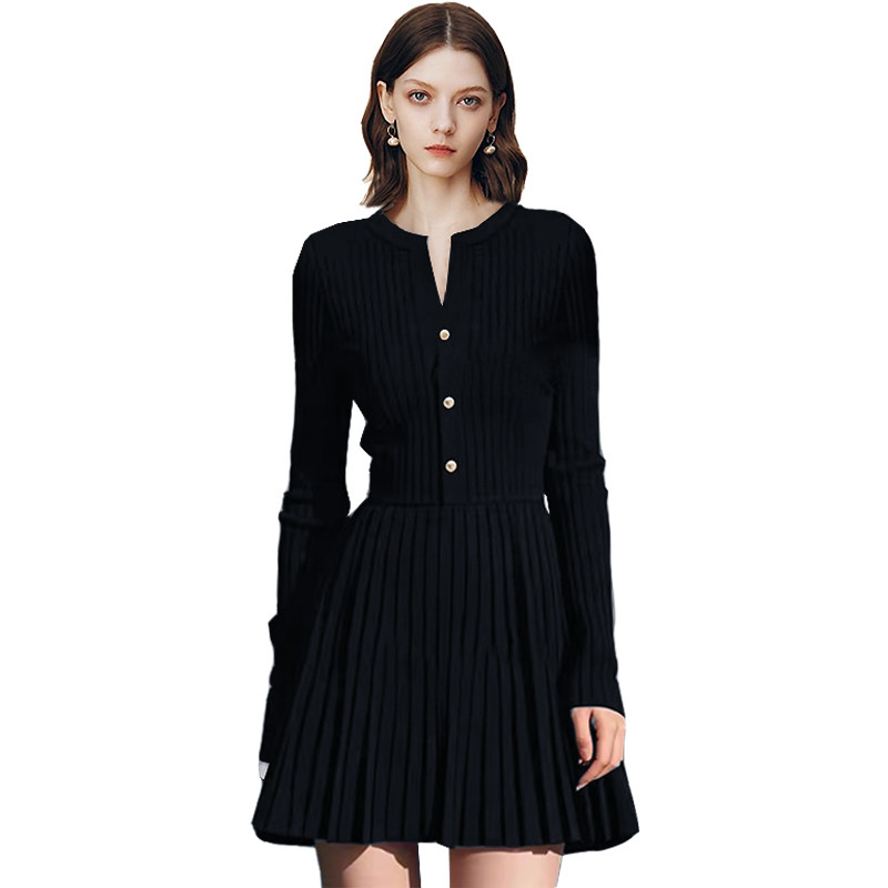 QOOEL优雅气质显瘦连衣裙2025秋冬新款通勤收腰显瘦洋气百褶A字裙