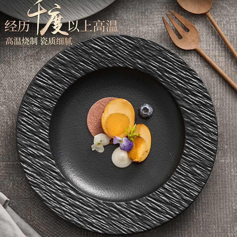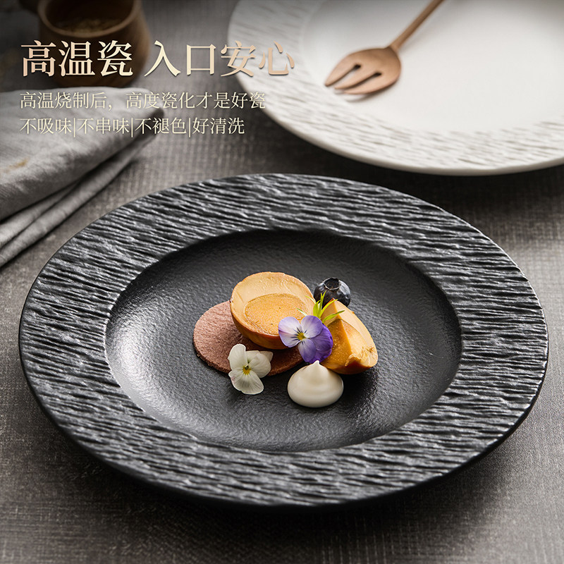 草帽盘陶瓷日式创意岩石纹家用沙拉碗西餐浓汤盘意面盘子多功能盘