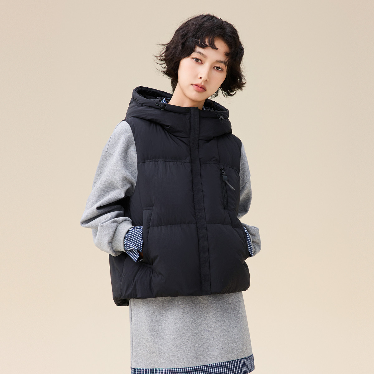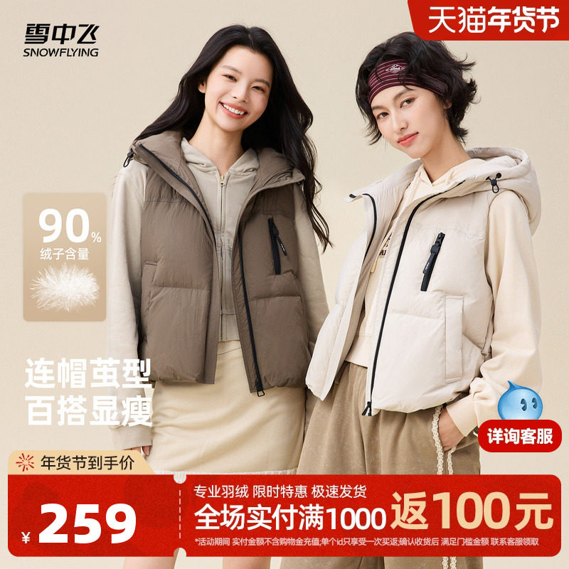 雪中飞2025冬新款女士设计感外穿百搭羽绒马甲背心休闲时尚米白