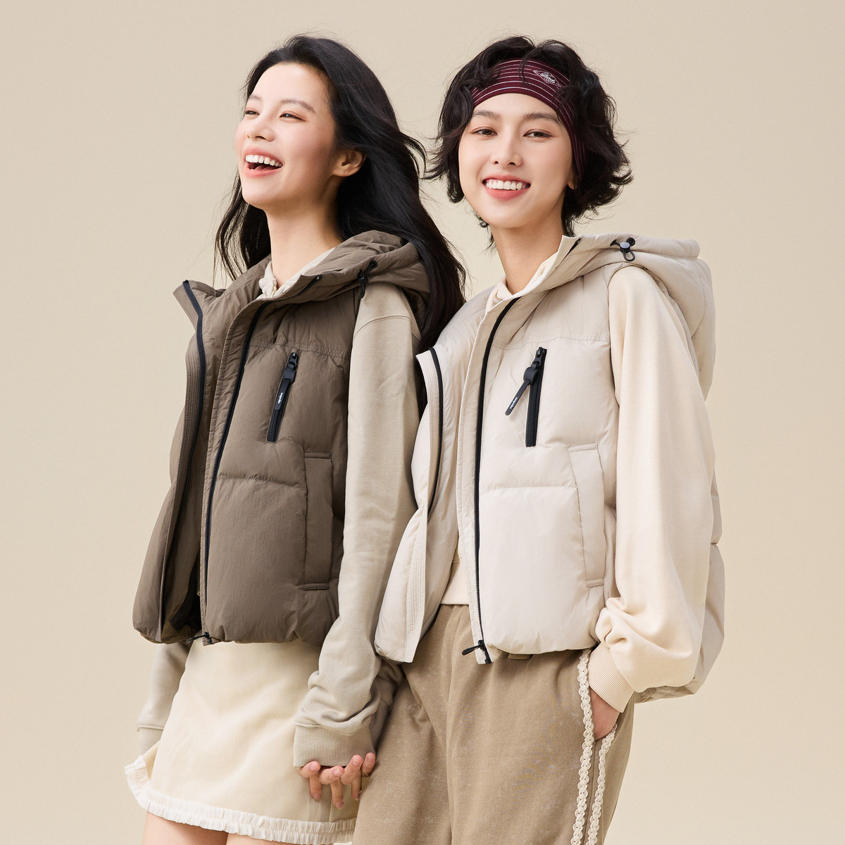 骆驼女装羽绒马甲2025秋冬新款白色轻薄短款外穿保暖背心男女外套