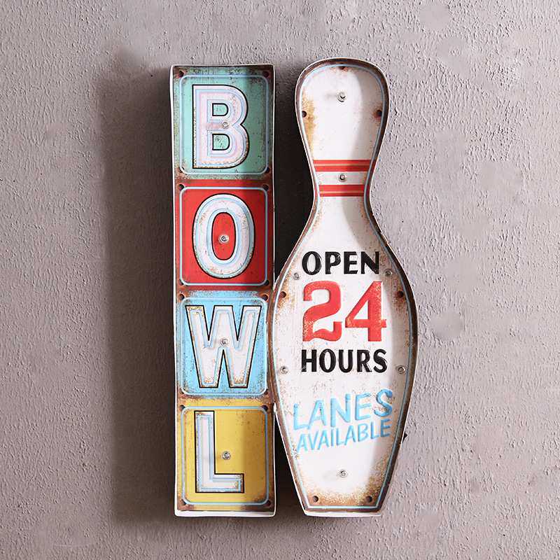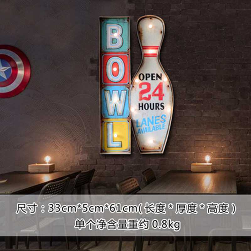 跨境电商新款货源保龄球墙面墙饰LED灯铁壁饰家居咖啡酒吧铁皮画