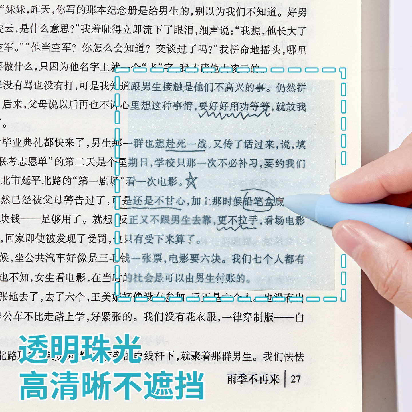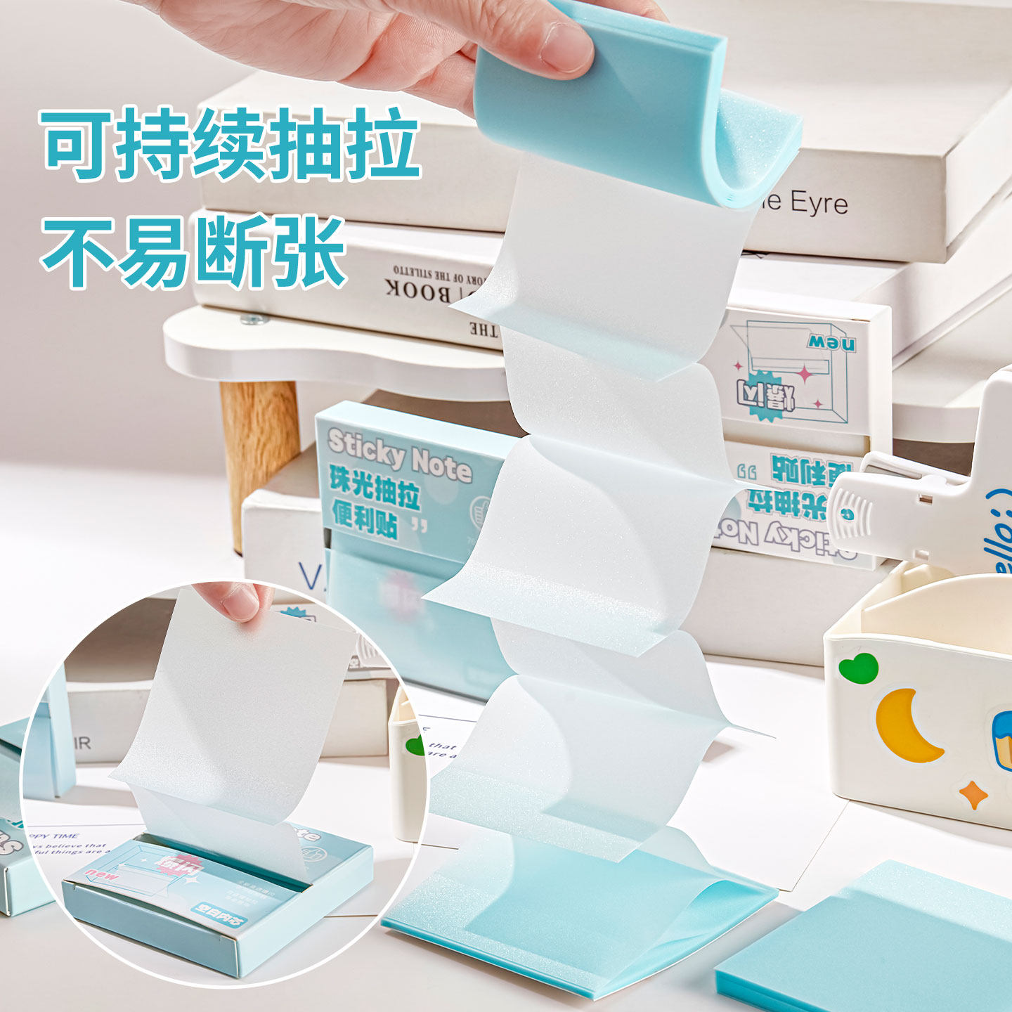 透明珠光便利贴抽拉式便签本考研办公透明便利贴不遮挡文字高颜值记事贴做笔记初高中生学生记事贴便签纸
