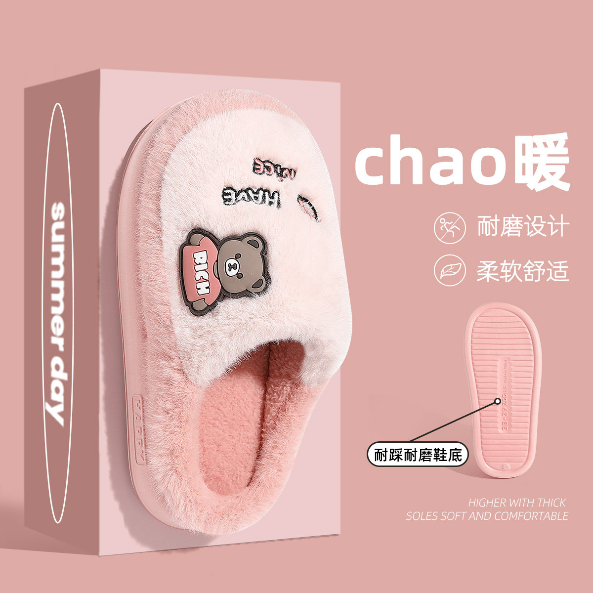 亚束棉拖鞋男士破茧外穿厚底增高情侣大码室内居家冬季保暖女新款