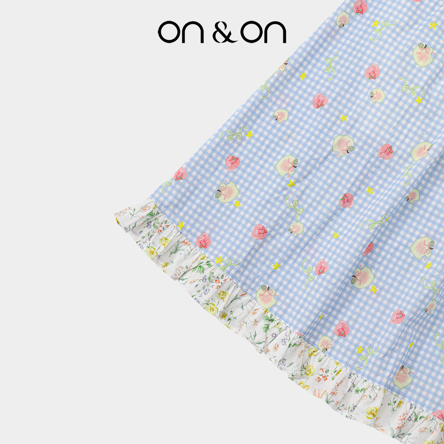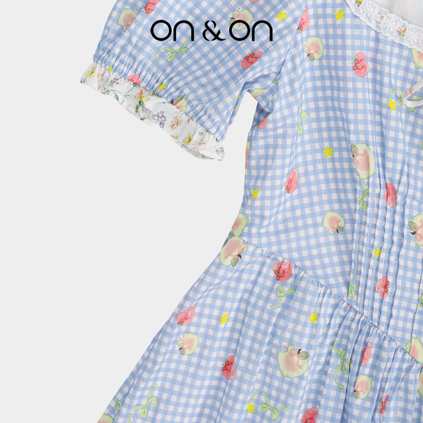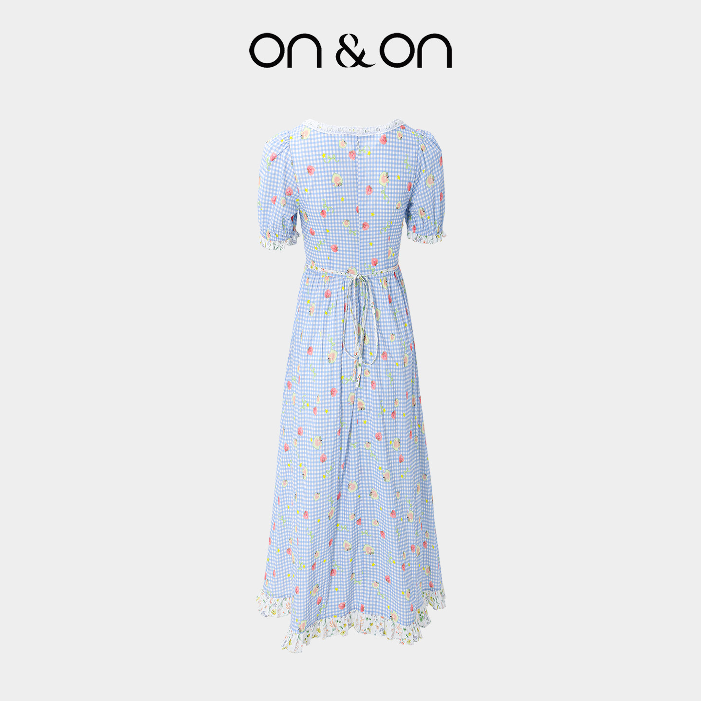 ON&ON/安乃安2025夏季新款法式方领收腰文艺复古格纹碎花连衣裙