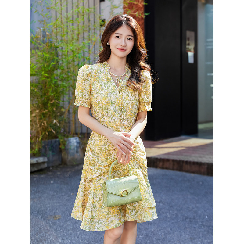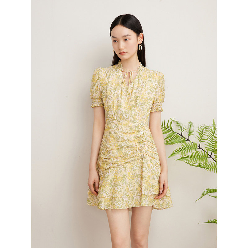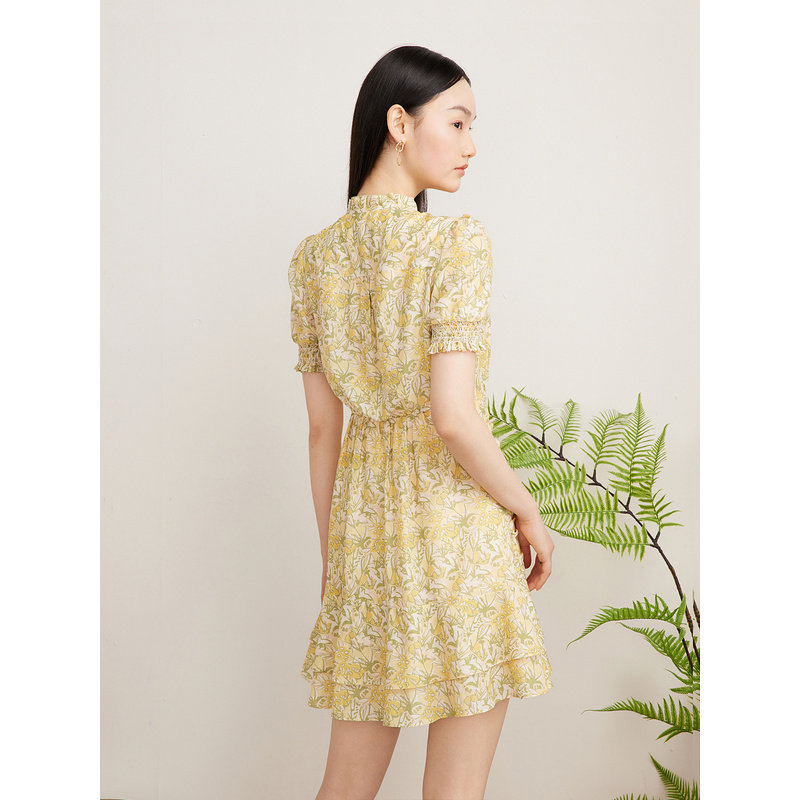 【真丝系列】Goodland美地夏季含桑蚕丝法式优雅碎花连衣裙