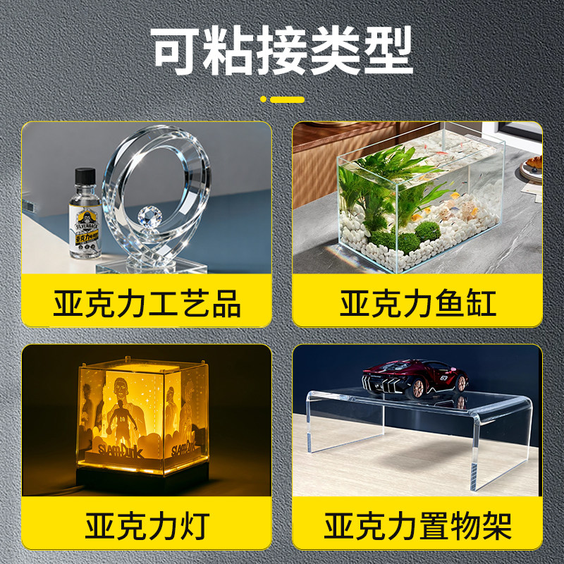 亚克力专用胶水无痕强力快干粘亚克力板ABS板有机玻璃鱼缸修补胶PS板胶专用粘合剂防水透明无影胶亚克力胶水