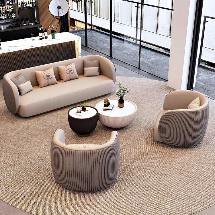 北欧洽谈意式沙发茶几组合酒店办公室圆弧皮艺沙发展厅休息区沙发
