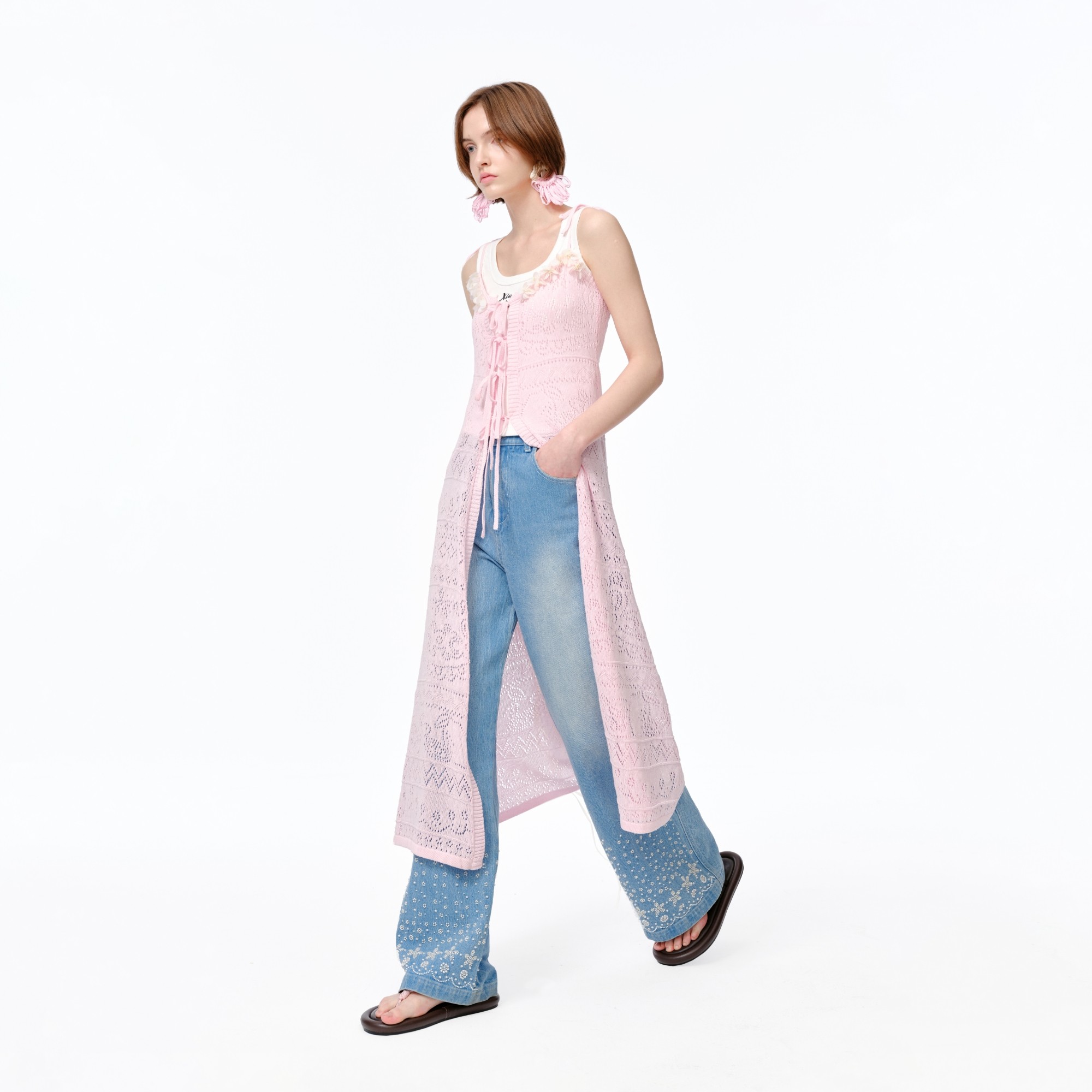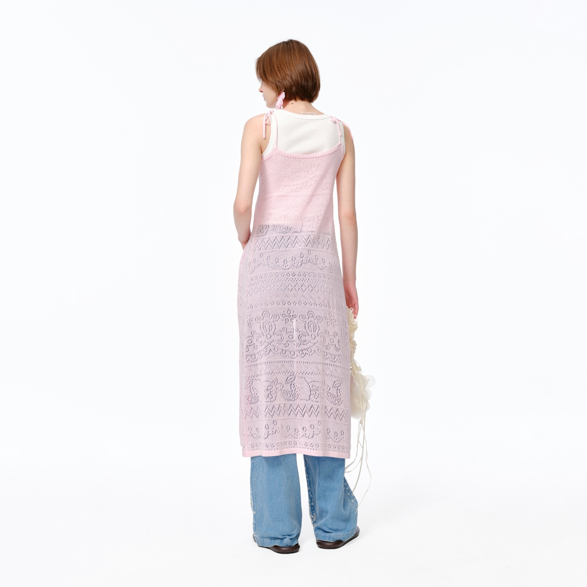 XIAOLI筱李 25春夏立体嵌花装饰挑孔系带开衫连衣裙
