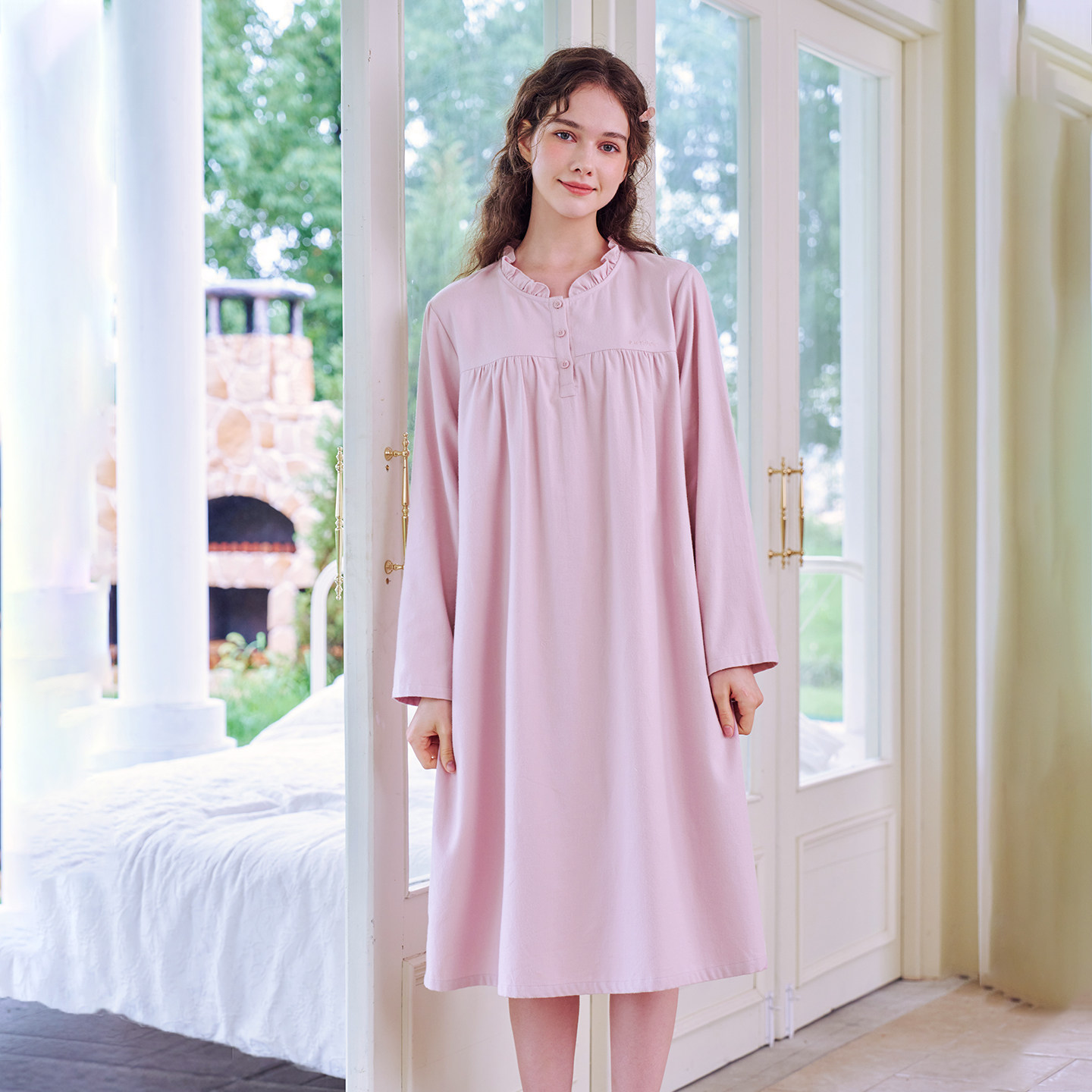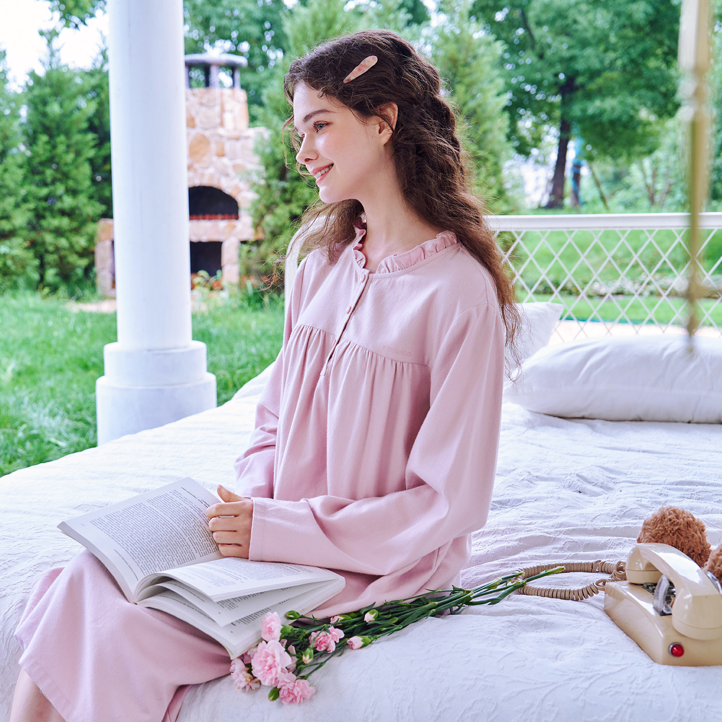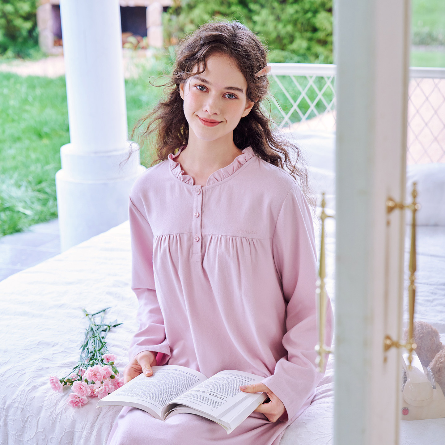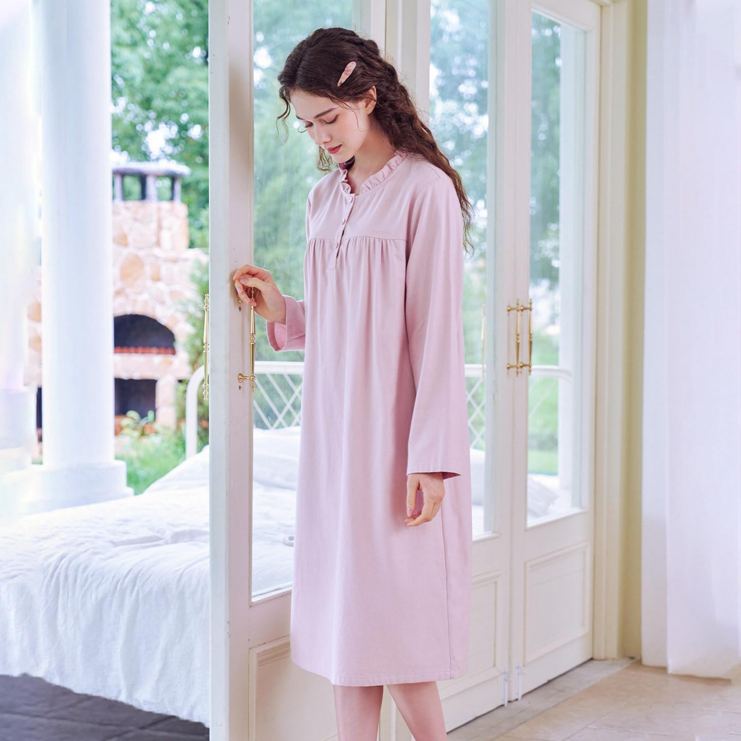 美标春秋新款长袖纯棉睡裙女甜美公主风可外穿全棉质家居服睡衣冬