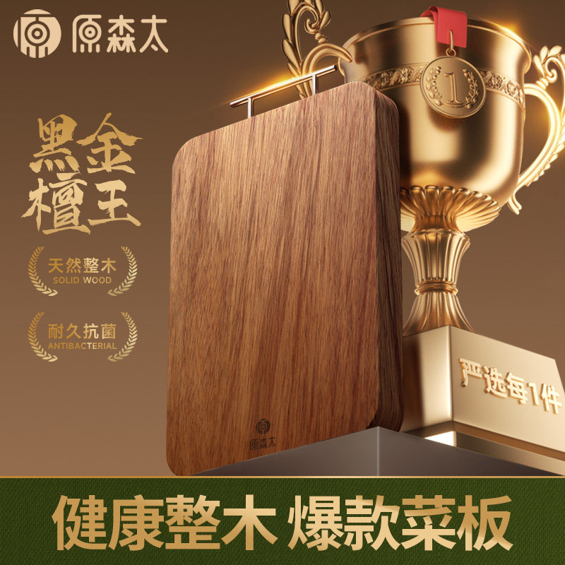 原森太黑金檀木菜板防霉抗菌家用食品级切菜板实木砧板整木案板