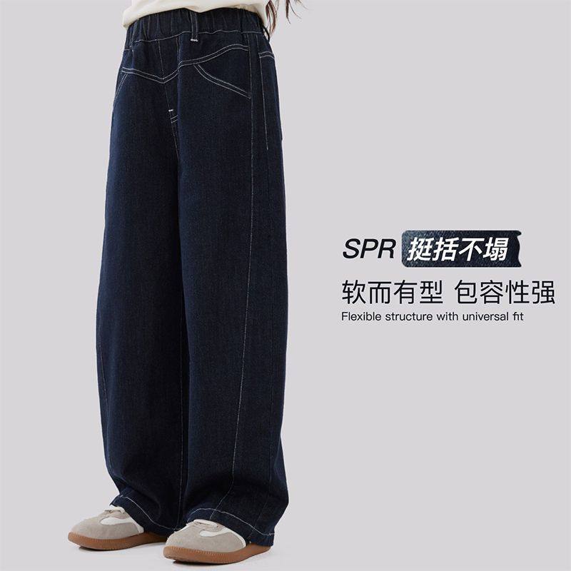 秋季新款阔腿裤女童春秋韩版复古做旧牛仔裤中大童宽松时髦镰刀裤