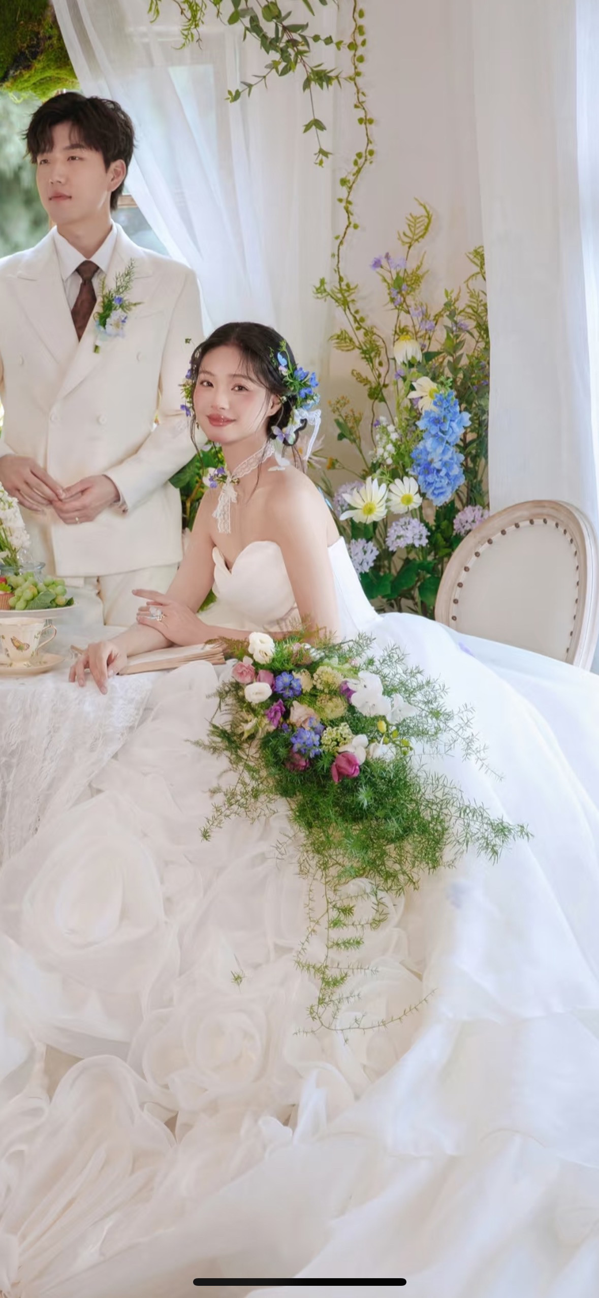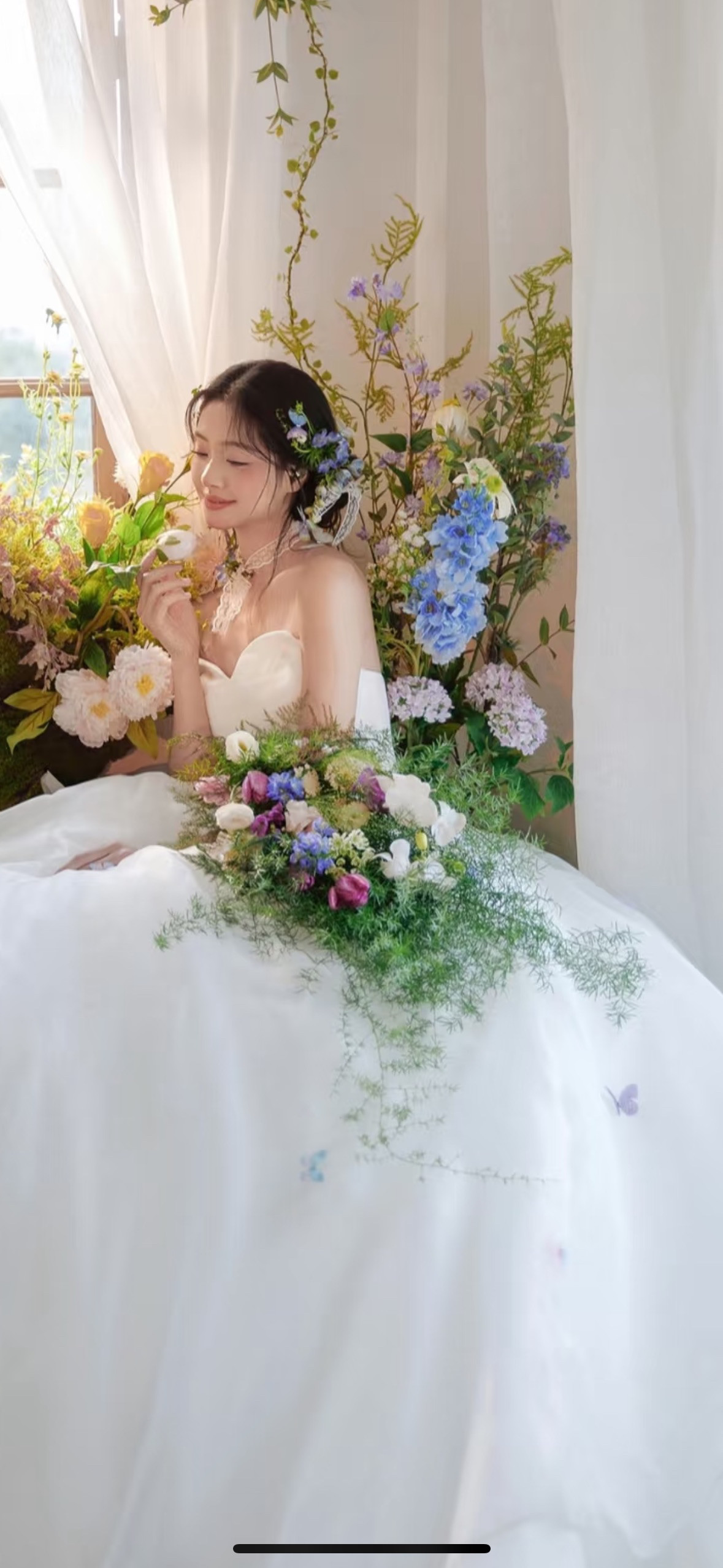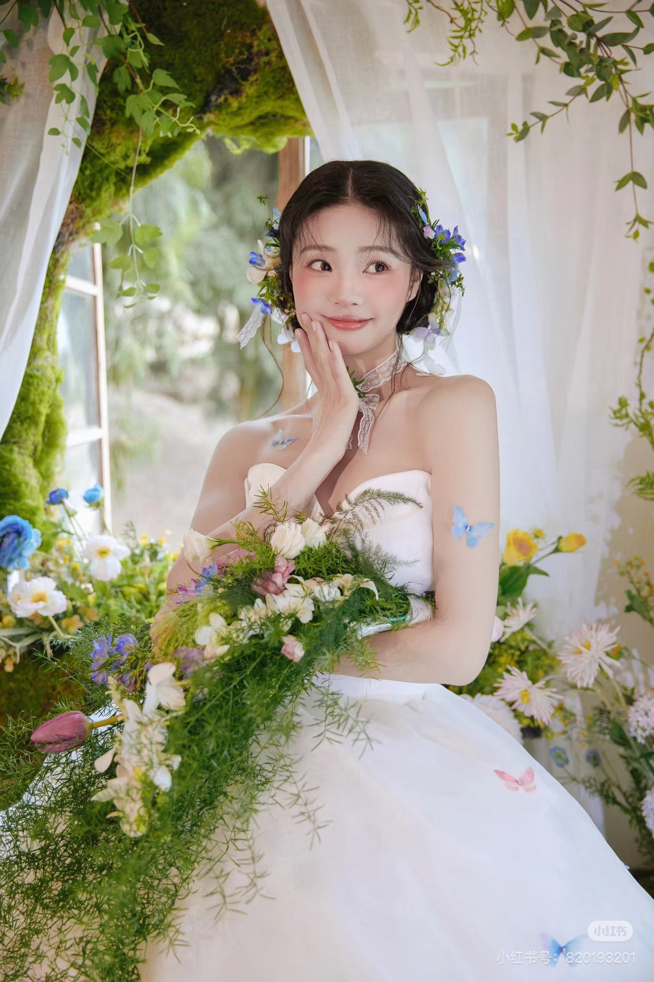 手捧花瀑布垂坠感新娘花束 结婚摄影仿真花绿白假花家居台面装饰