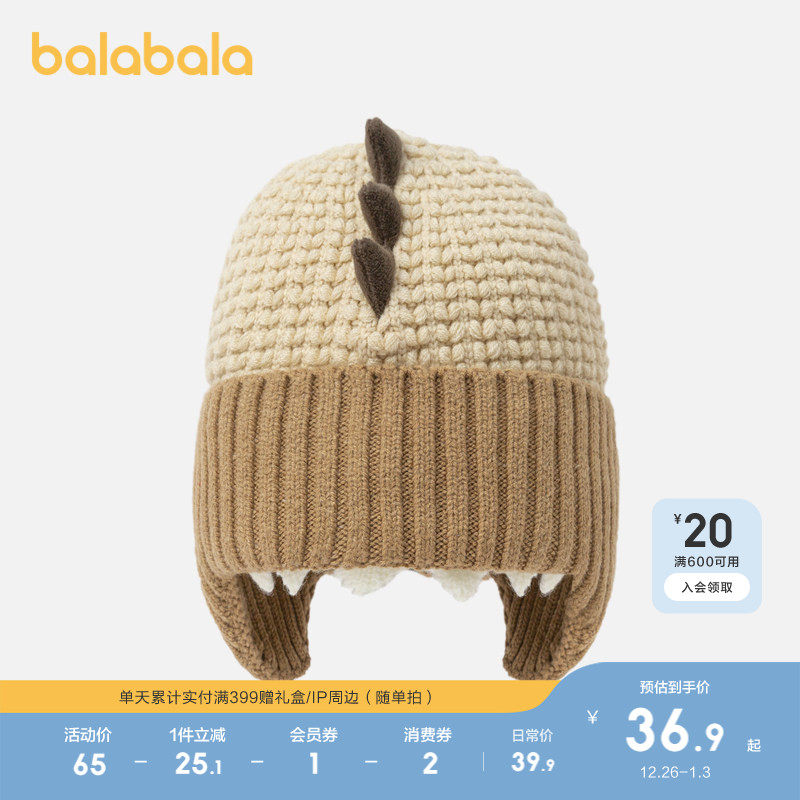 巴拉巴拉儿童帽子冬季男童女童保暖帽护耳帽撞色舒适温暖时尚可爱
