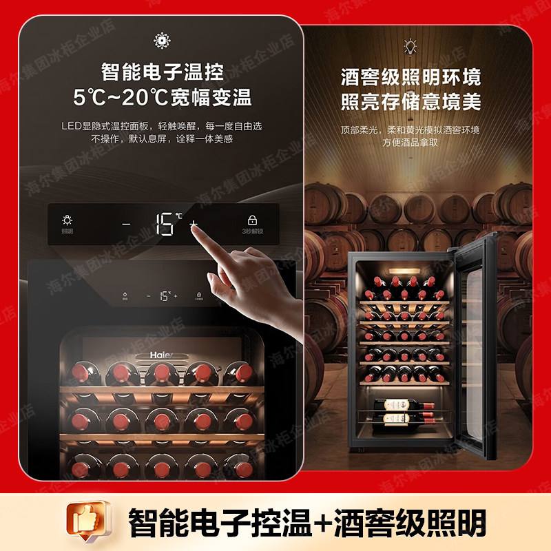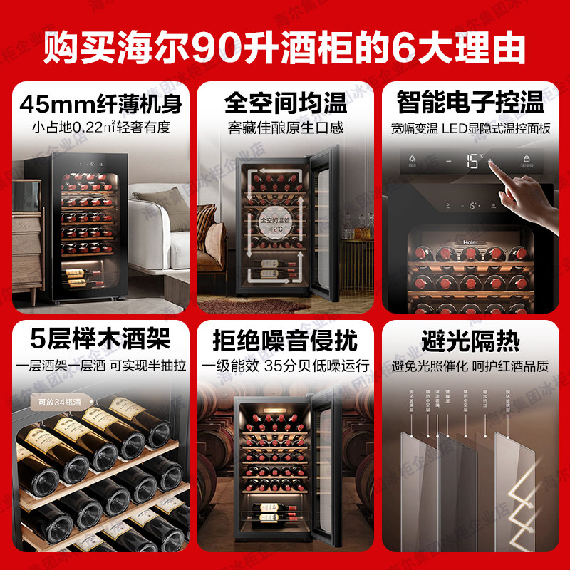 海尔超薄恒温酒柜90/150/360红酒柜冷藏家用小型办公室嵌入式客厅
