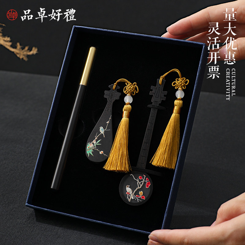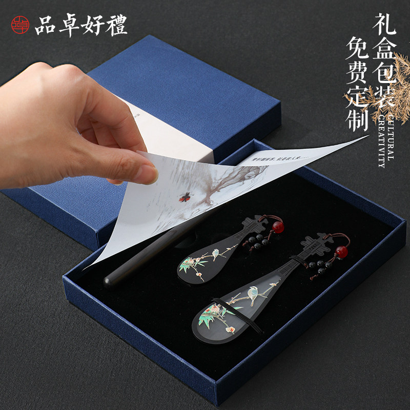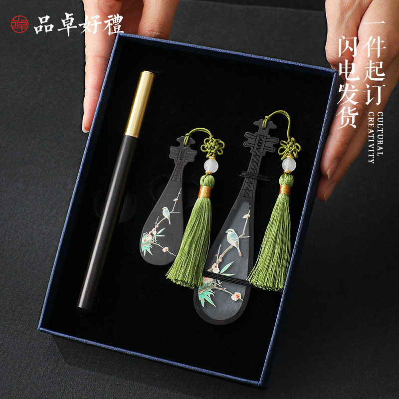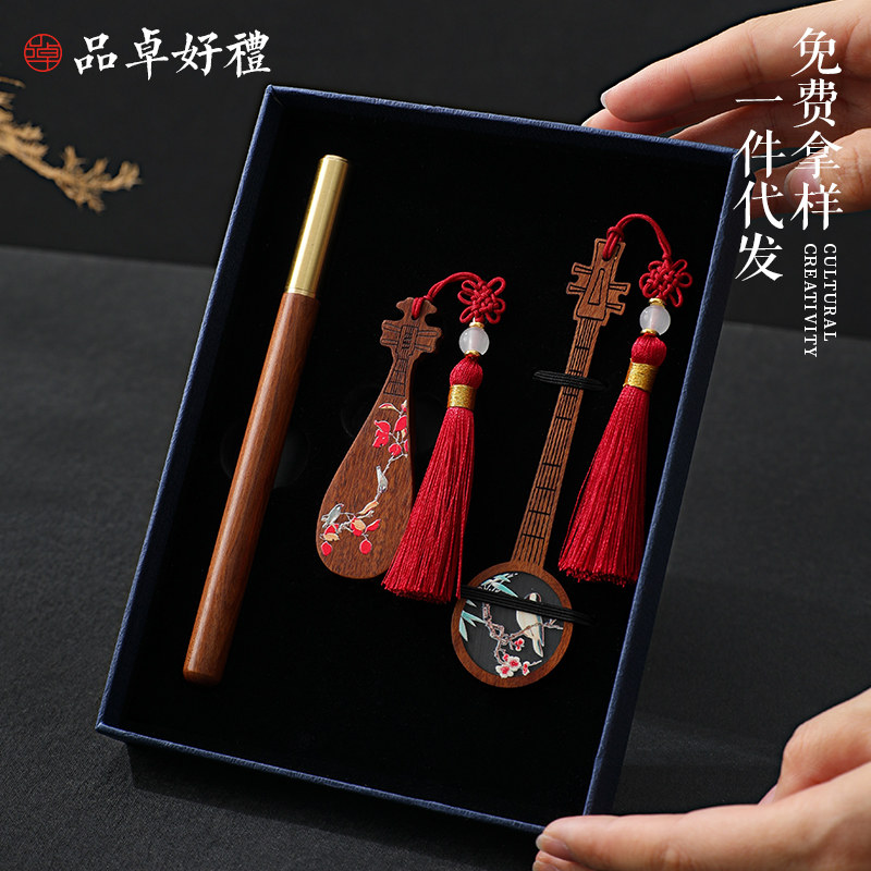 红木紫光檀彩绘乐器书签U盘高档礼盒套装 古典中国风创意黑檀木质文创产品公司学校纪念礼物商务礼品定制logo