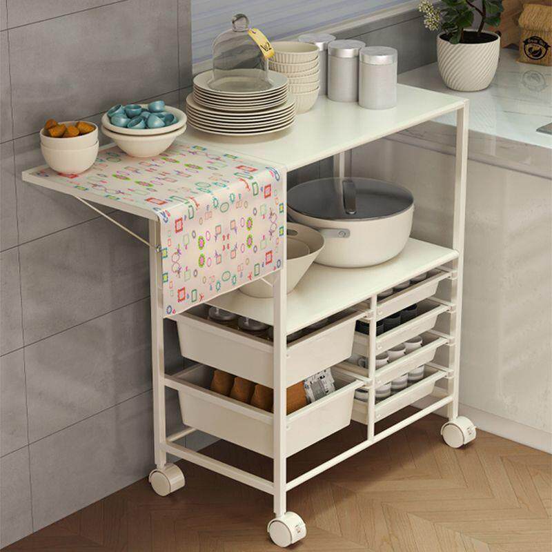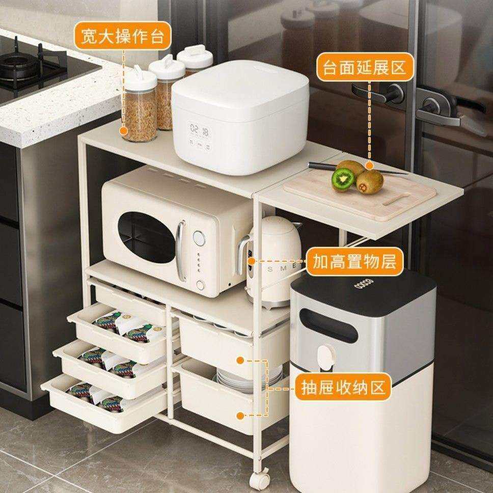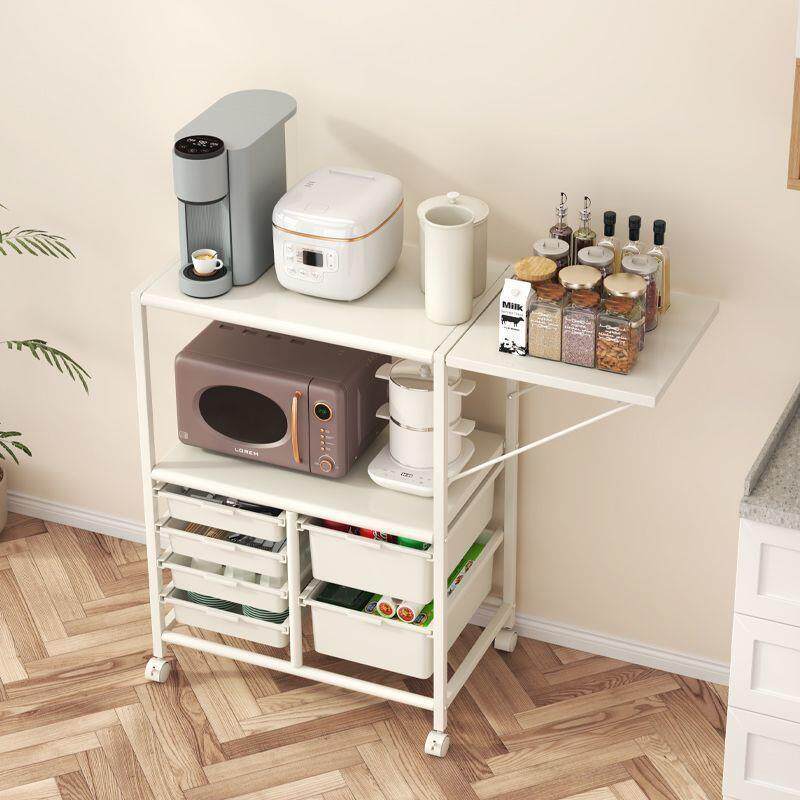 厨房微波炉小家电储物柜奶油风折叠家用移动餐边柜置物架收纳架子