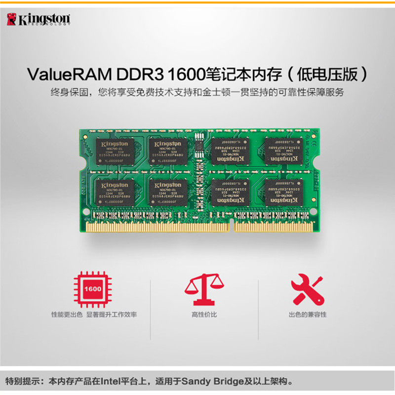 金士顿DDR3L笔记本电脑内存条3代1600 8G三星海力士4g ddr3 1333