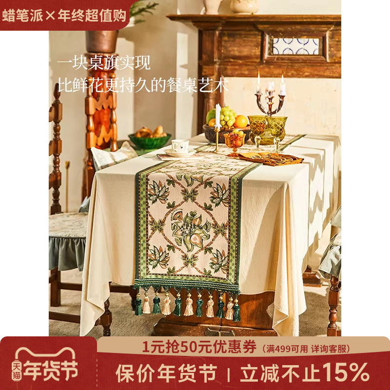 蜡笔派莫莉桌旗餐桌布轻奢高端高级美感新中式复古长条茶几茶旗