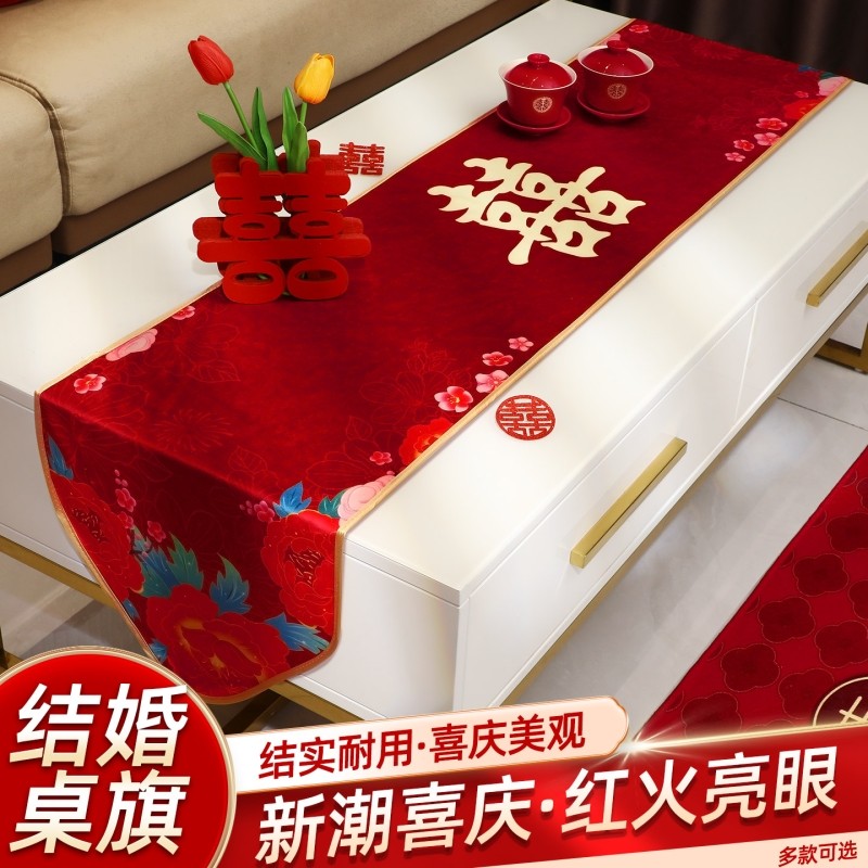 桌旗结婚茶几桌布婚房布置装饰红色婚礼订婚用品喜事婚庆用品大全