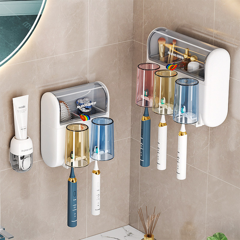 佳帮手牙刷牙杯置物架壁挂式免打孔放电动牙膏漱口杯家庭收纳架子