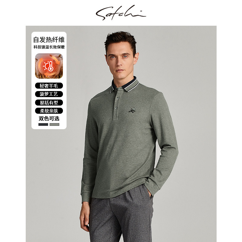 SATCHI沙驰男装男士长袖POLO衫秋季新款商务羊毛打底T恤衫男