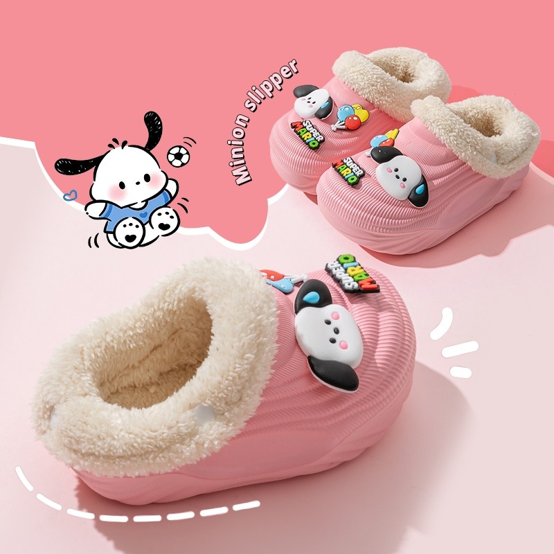 儿童棉拖鞋防滑2025冬季新款保暖防水加绒室内外穿流汗狗洞洞鞋