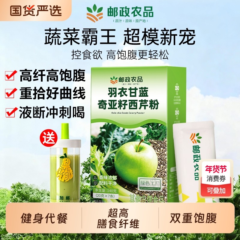 邮政羽衣甘蓝奇亚籽西芹粉代餐饱腹食品早餐女膳食纤维蔬菜粉豆浆