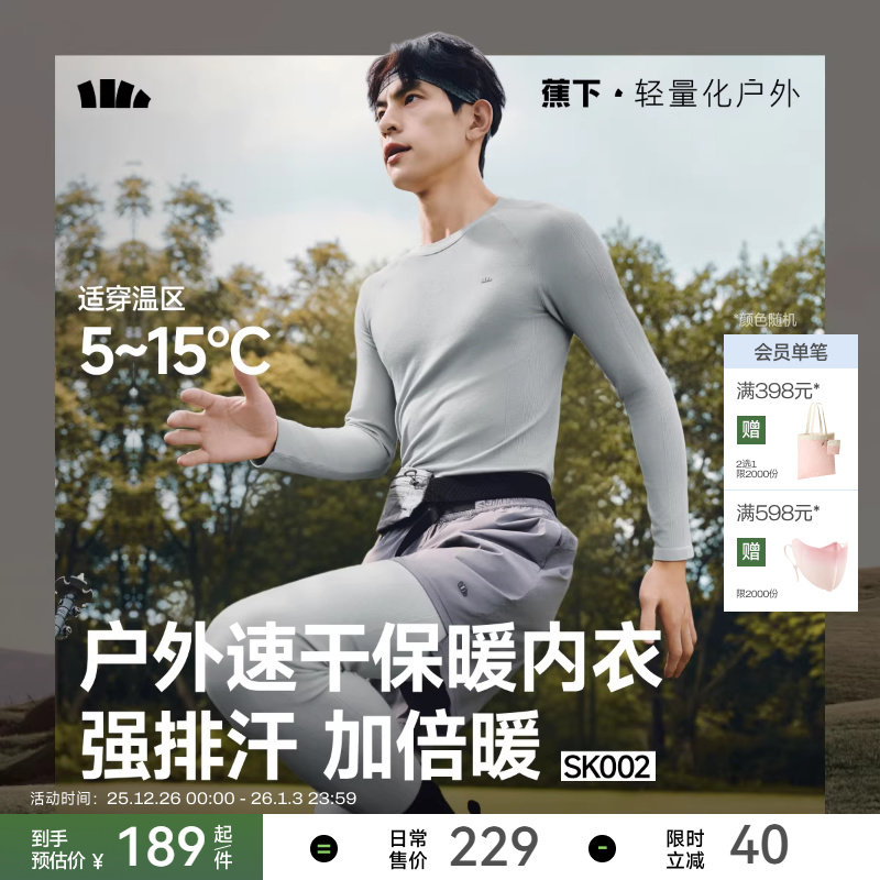 蕉下运动速干功能内衣套装滑雪跑步户外登山男排汗保暖压缩打底衣