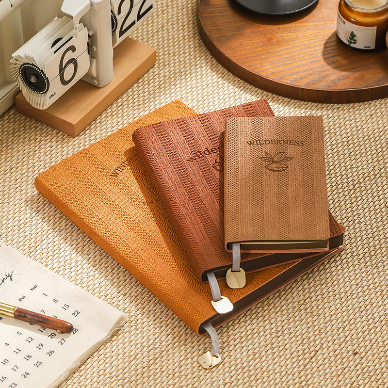 文创艺新款精致仿木条纹A6横线记事本定制可印logo高颜值商务办公便携笔记本出差旅行必备日程安排记录日记本