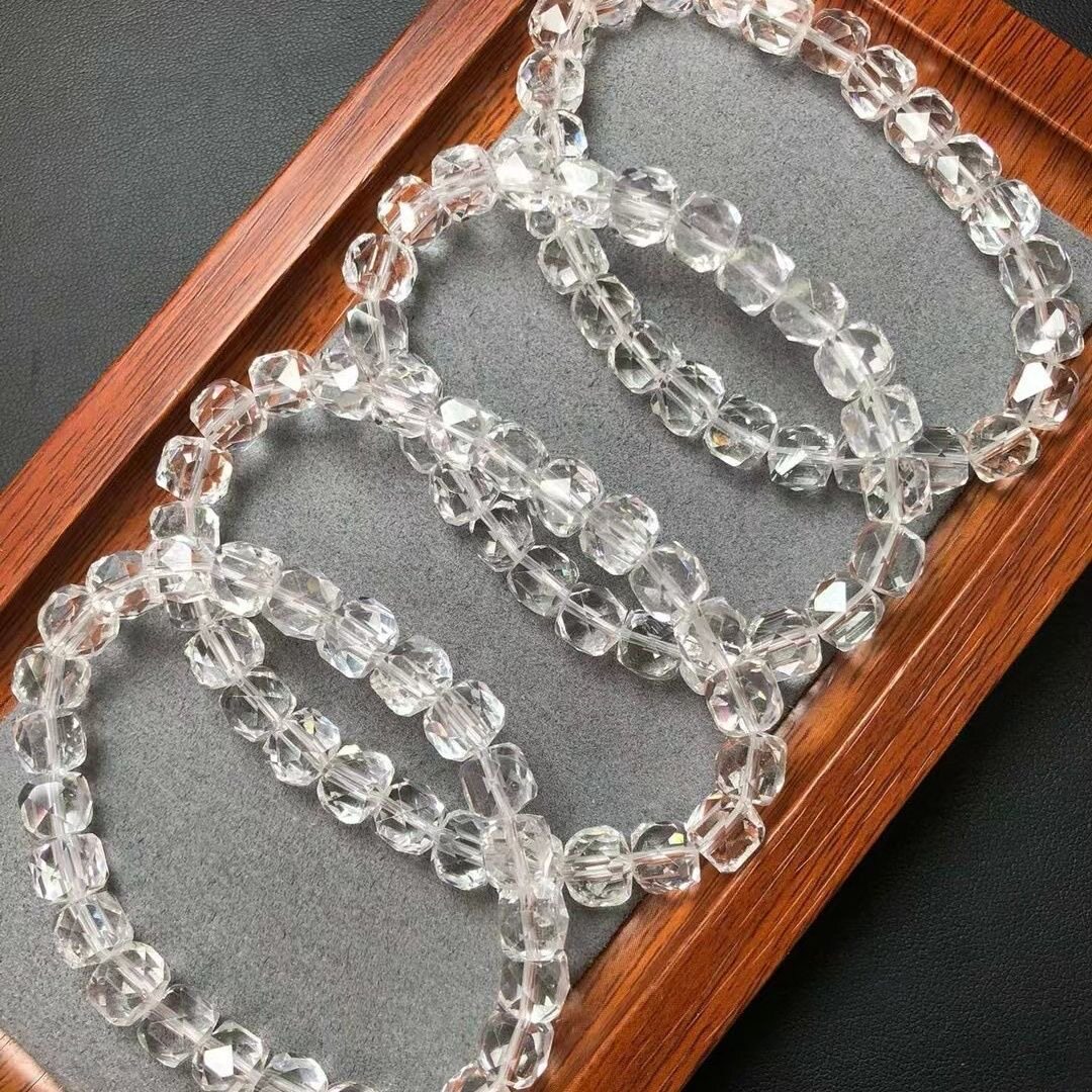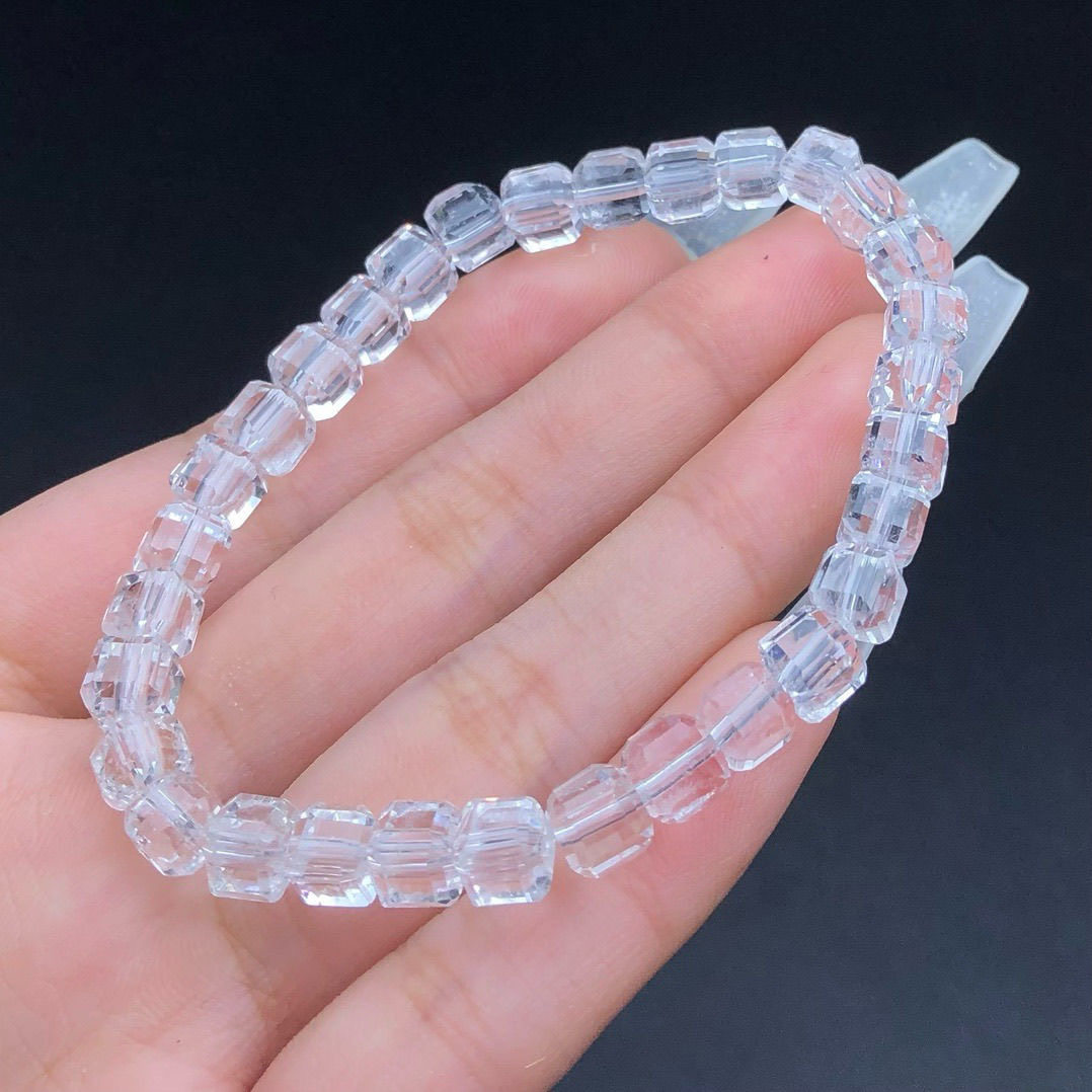 VZZS天然白水晶手链方糖形手串手链女切面方块送女友饰品礼情人节