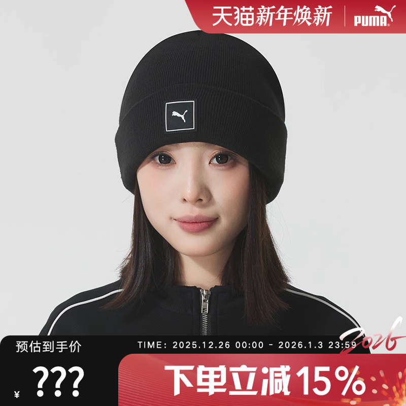 PUMA彪马运动帽冬季男女保暖复古休闲高顶针织帽毛线帽 026409-01