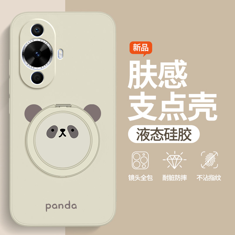 圆脸熊猫适用华为Nova12活力版手机壳nove保护套nava新款液态硅胶n0va板nowa带支架支点壳全包防摔男女软外壳
