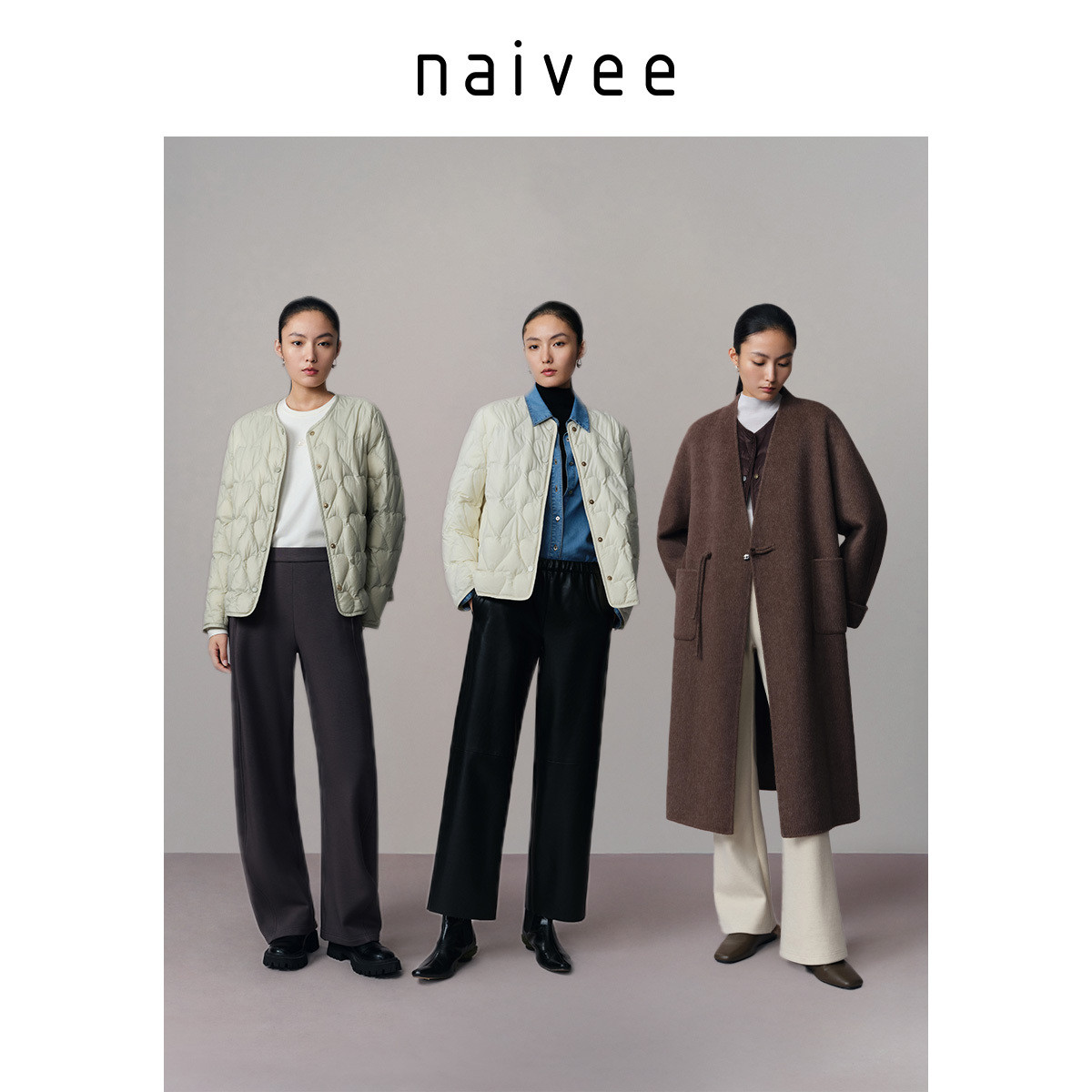 【零压轻暖鹅绒】naivee纳薇25冬新款无胆防绒羽绒火山岩