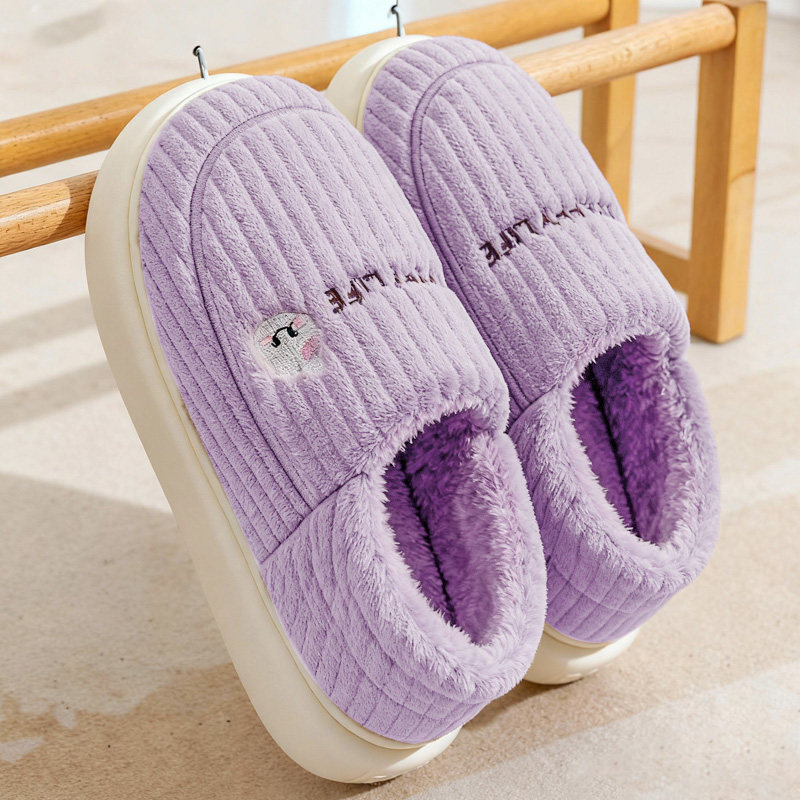 朴西棉拖鞋女士秋冬季厚底简约保暖室内居家用软底防滑情侣棉拖男