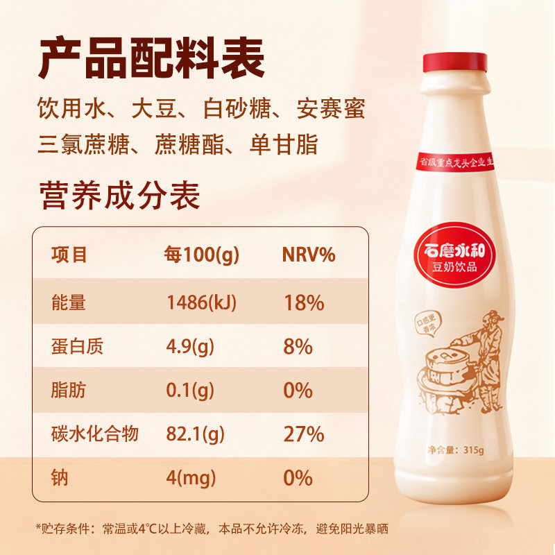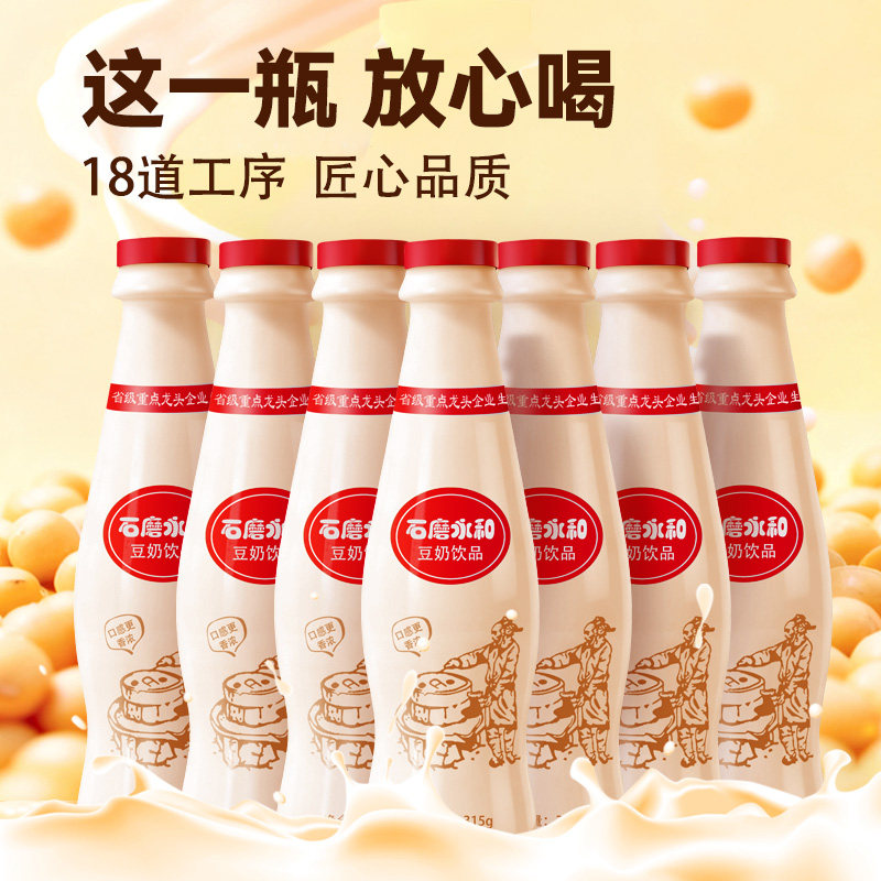 豆奶饮料瓶装早餐店饮品原味豆浆非转基因植物植物蛋白饮料石磨