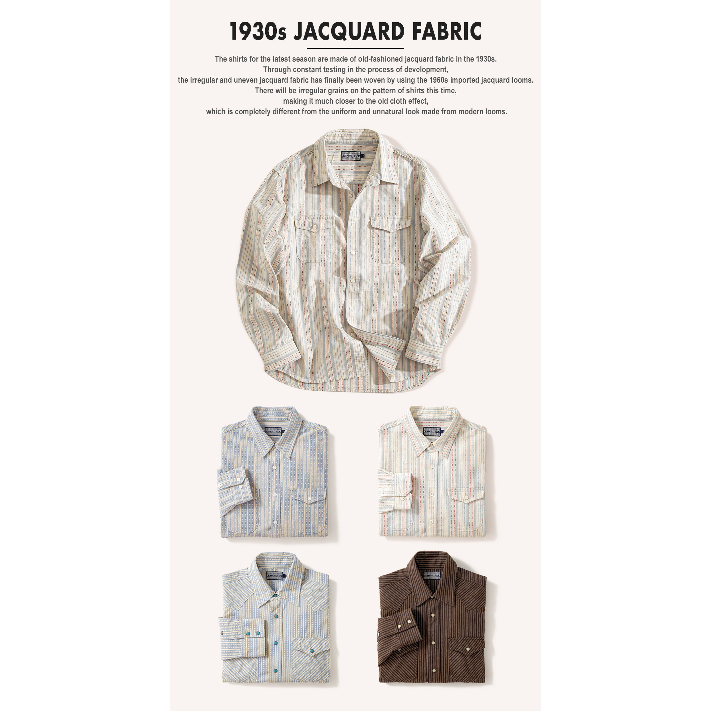 【30s老式提花】MTROBSON 重磅厚实提花刺绣长袖 西部工装衬衫