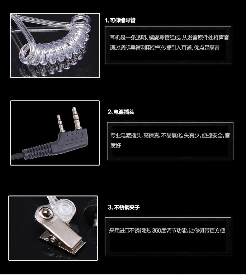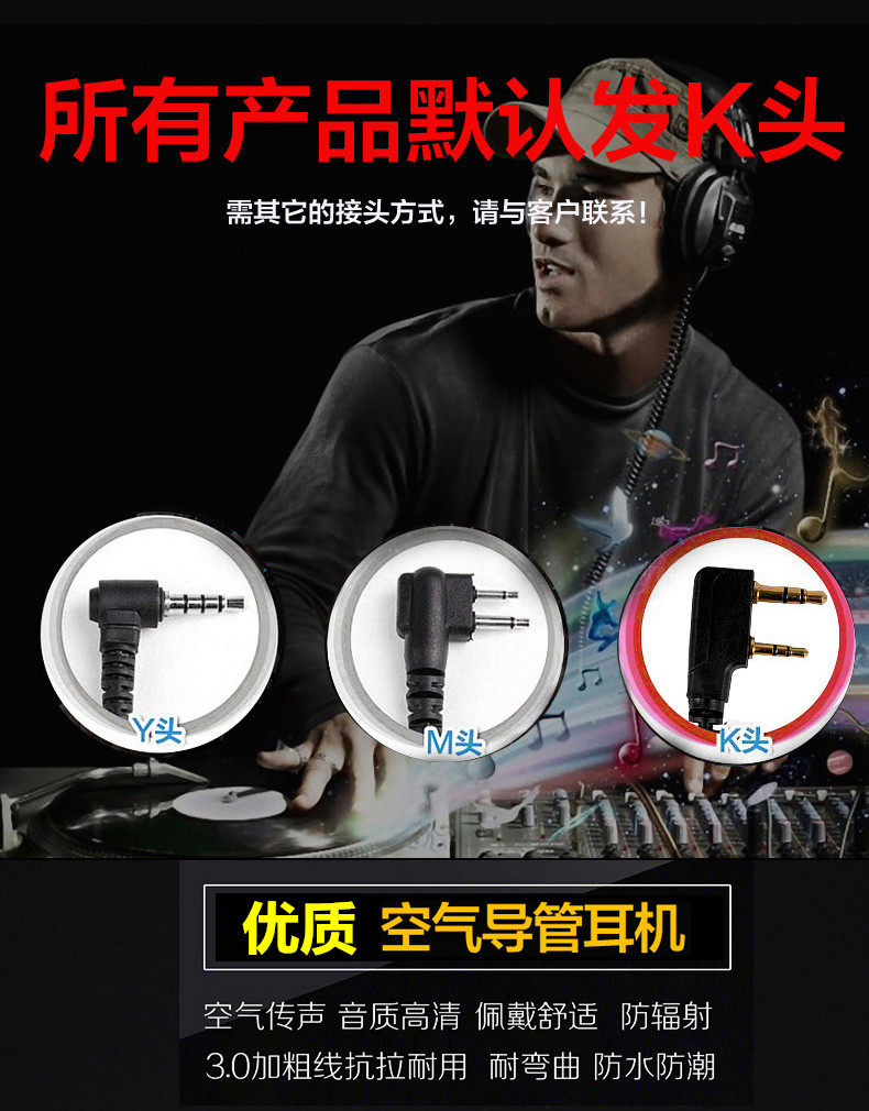 对讲电话机耳机线通用k头真空耳挂式防辐射空气导管保镖隐形耳塞