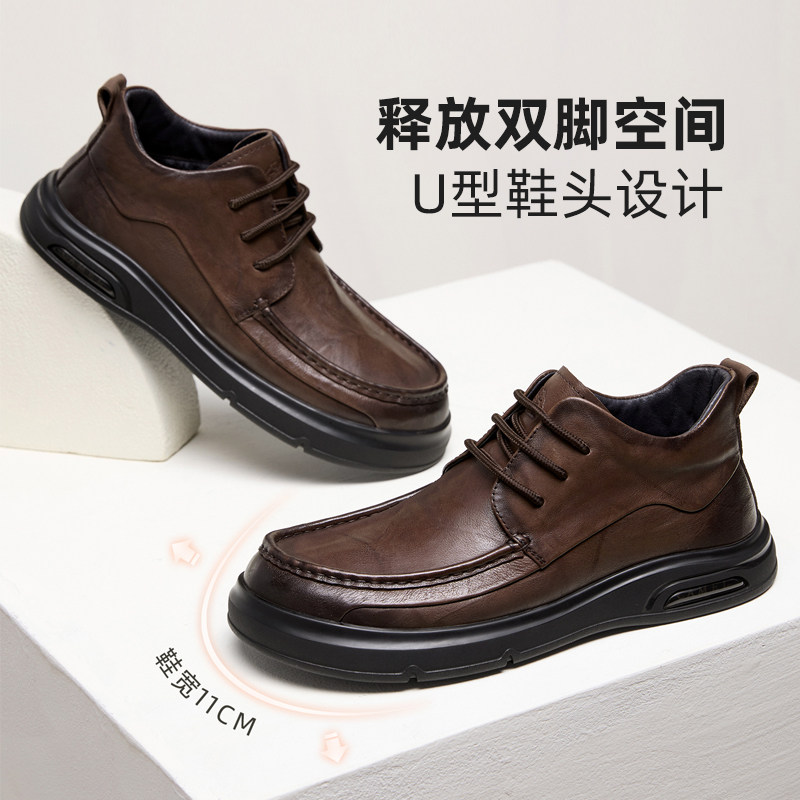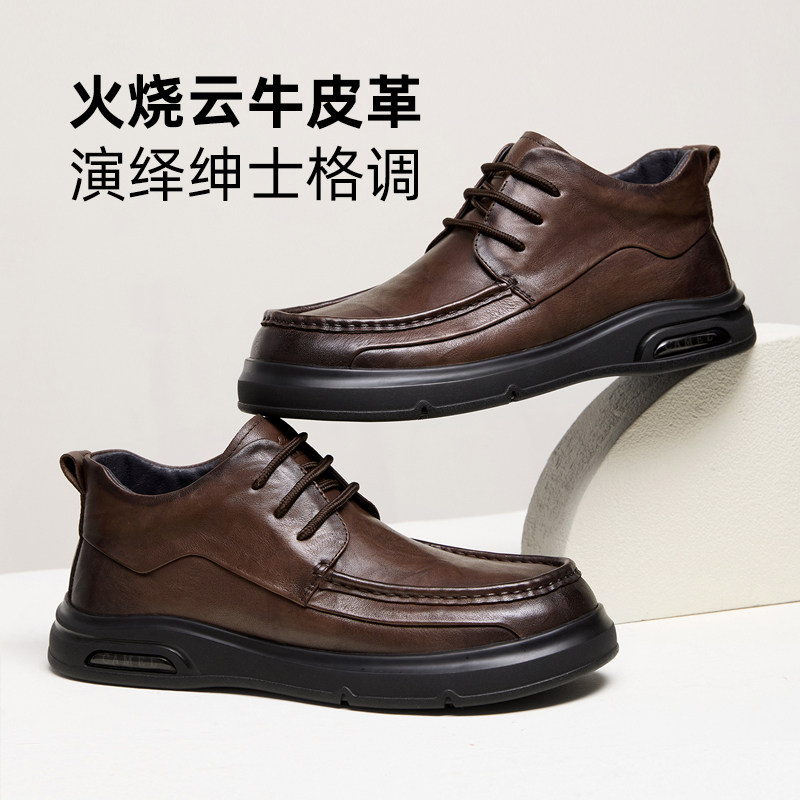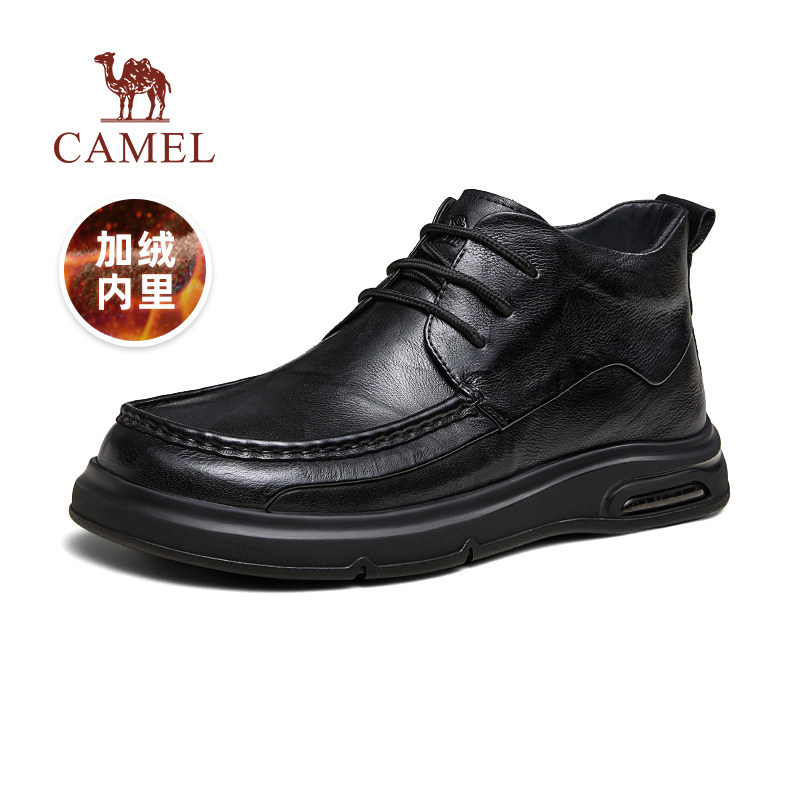 骆驼男鞋2025冬季复古厚底高帮保暖加绒棉鞋正装商务休闲皮鞋男士