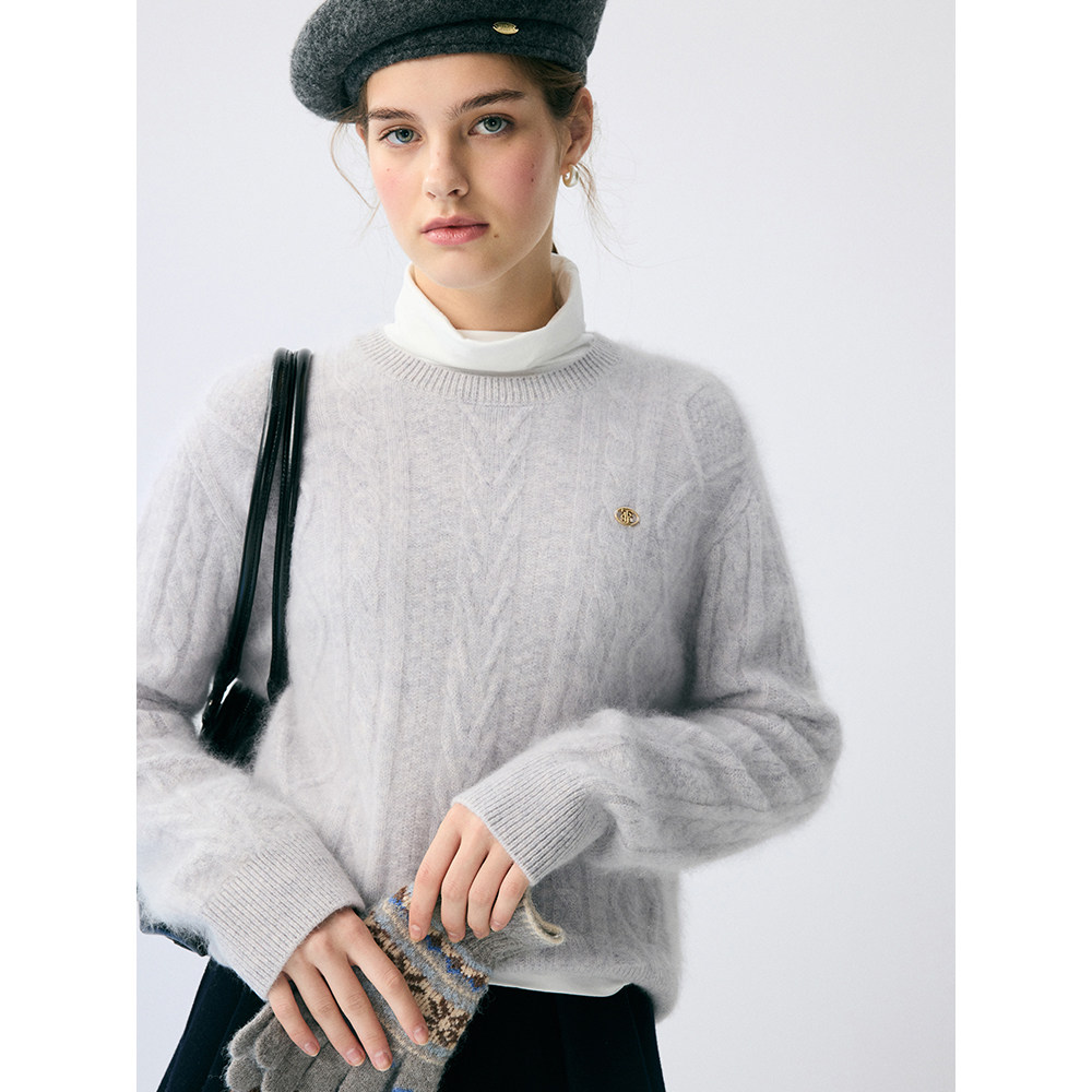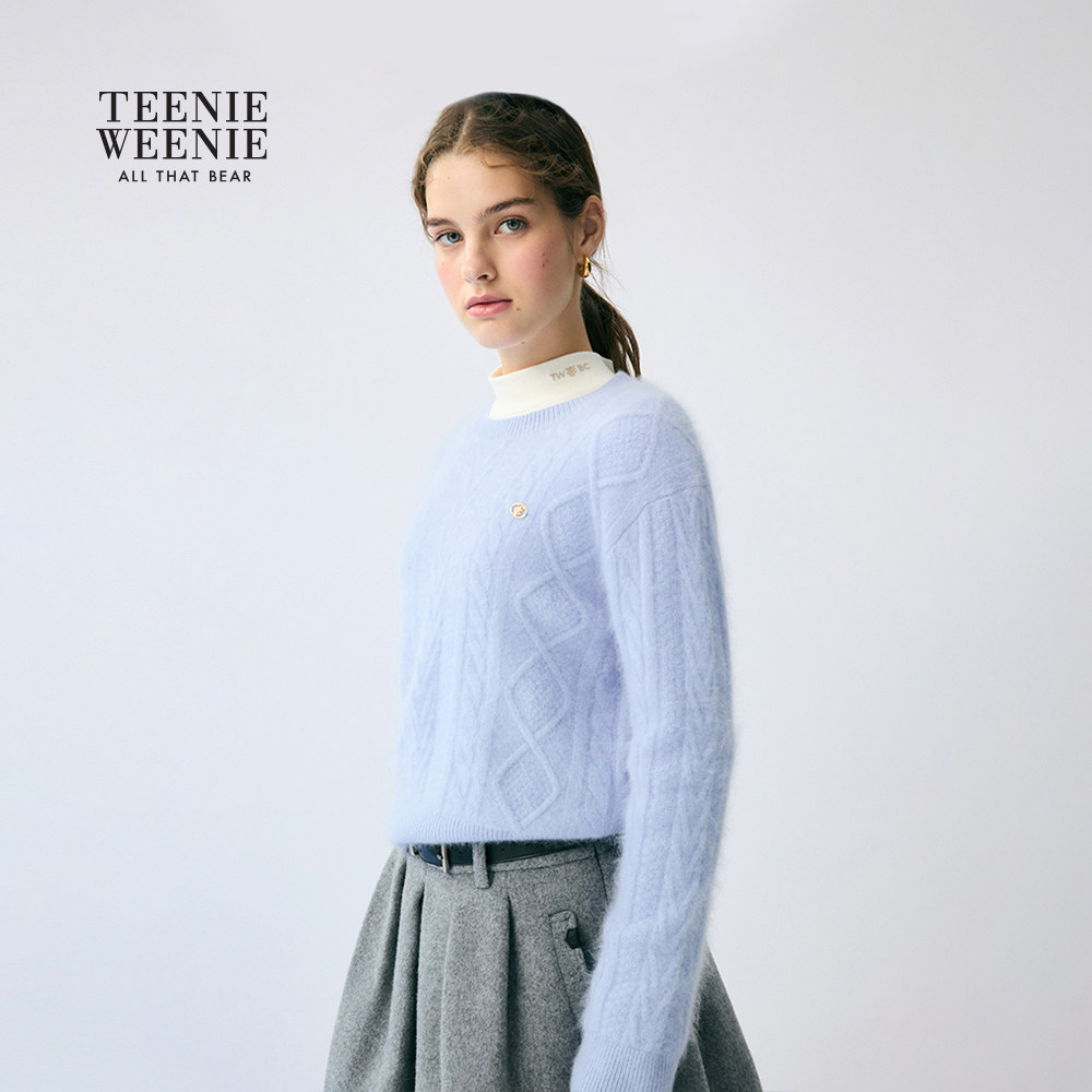 【四季绞花】TeenieWeenie小熊女25冬款舒适圆领绵羊毛针织衫外套