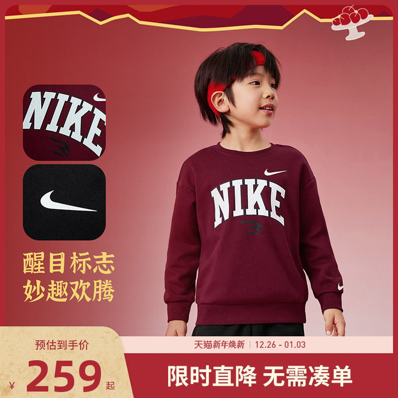 Nike 3brand童装加绒儿童套装冬季新款男童卫衣长裤女童运动套装