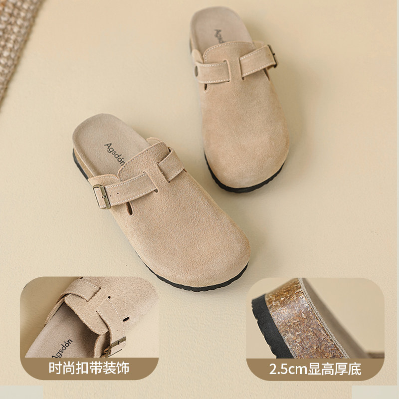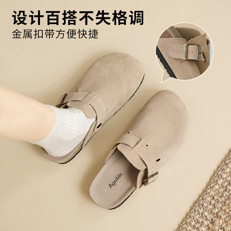 奥古狮登百搭真皮勃肯鞋女2025冬季新款鞋子厚底拖鞋软底博肯半拖