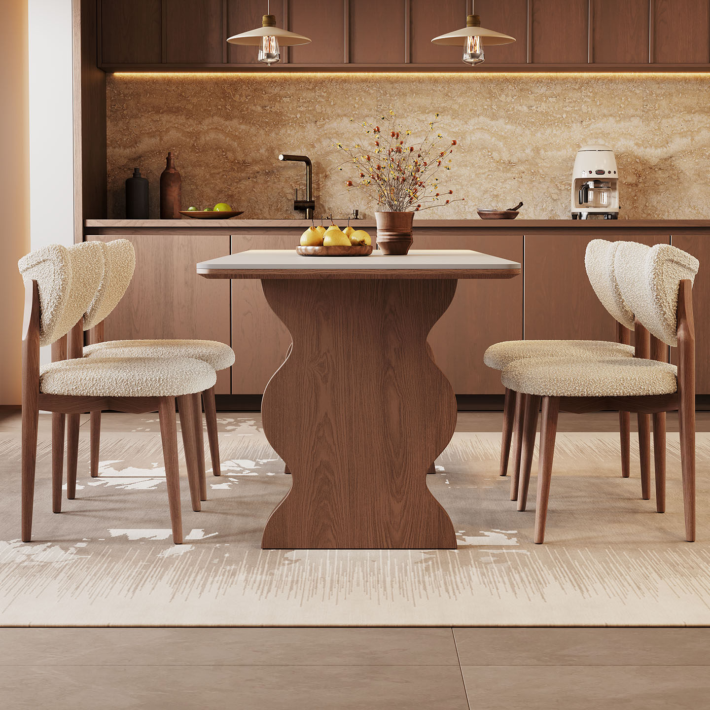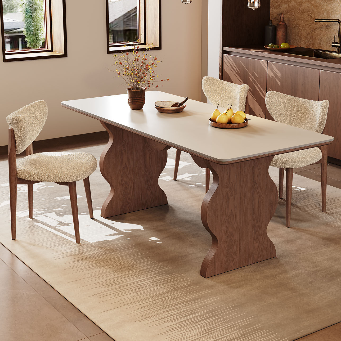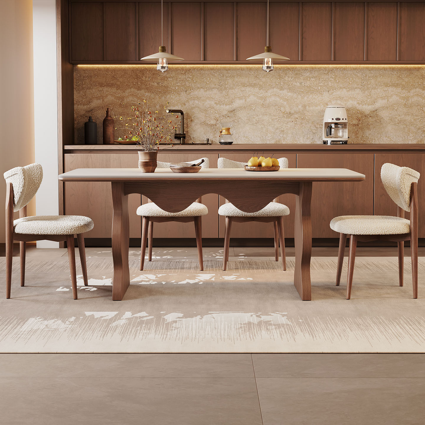 中古风实木餐桌长方形家用餐厅顺德北欧侘寂风哑光纯白岩板餐桌椅