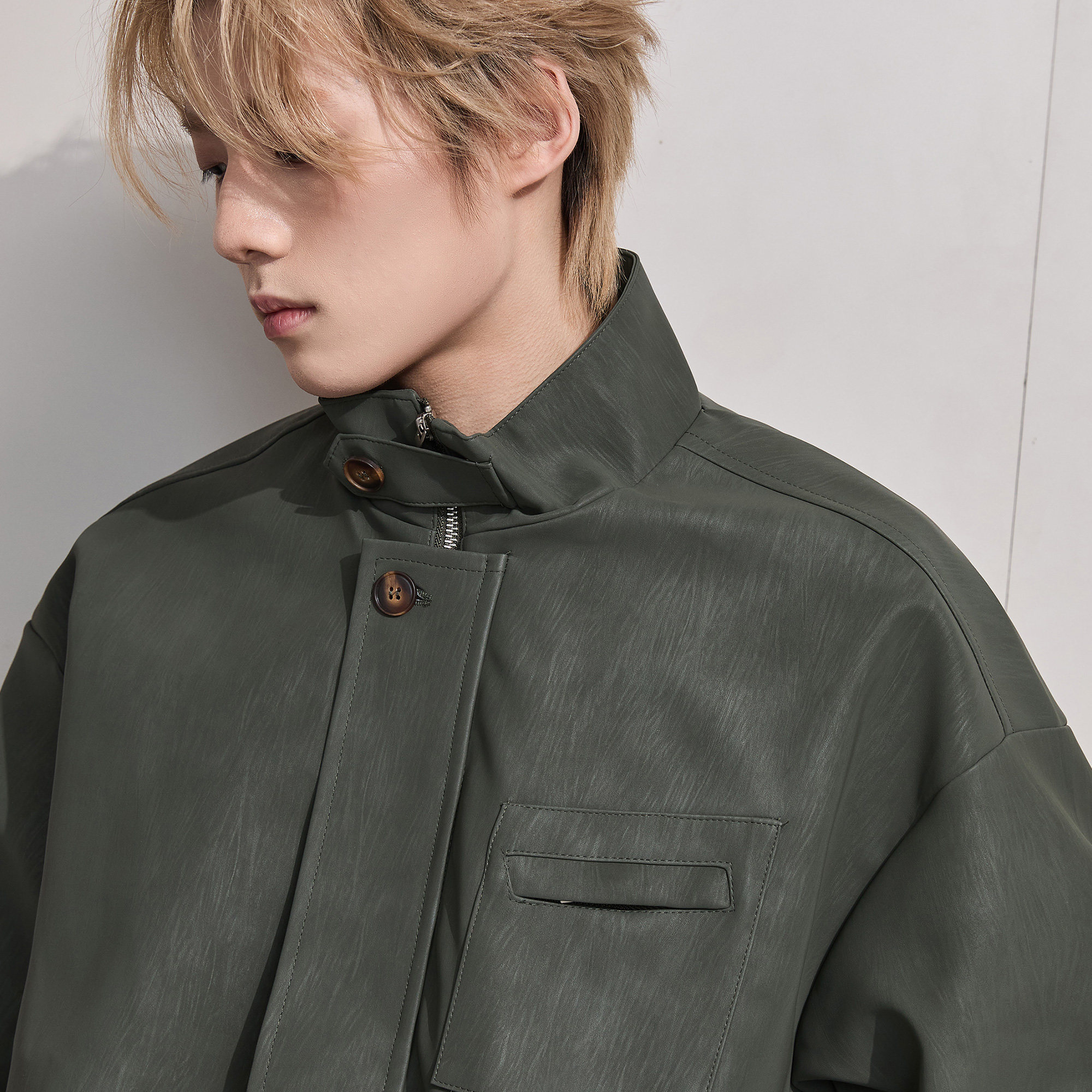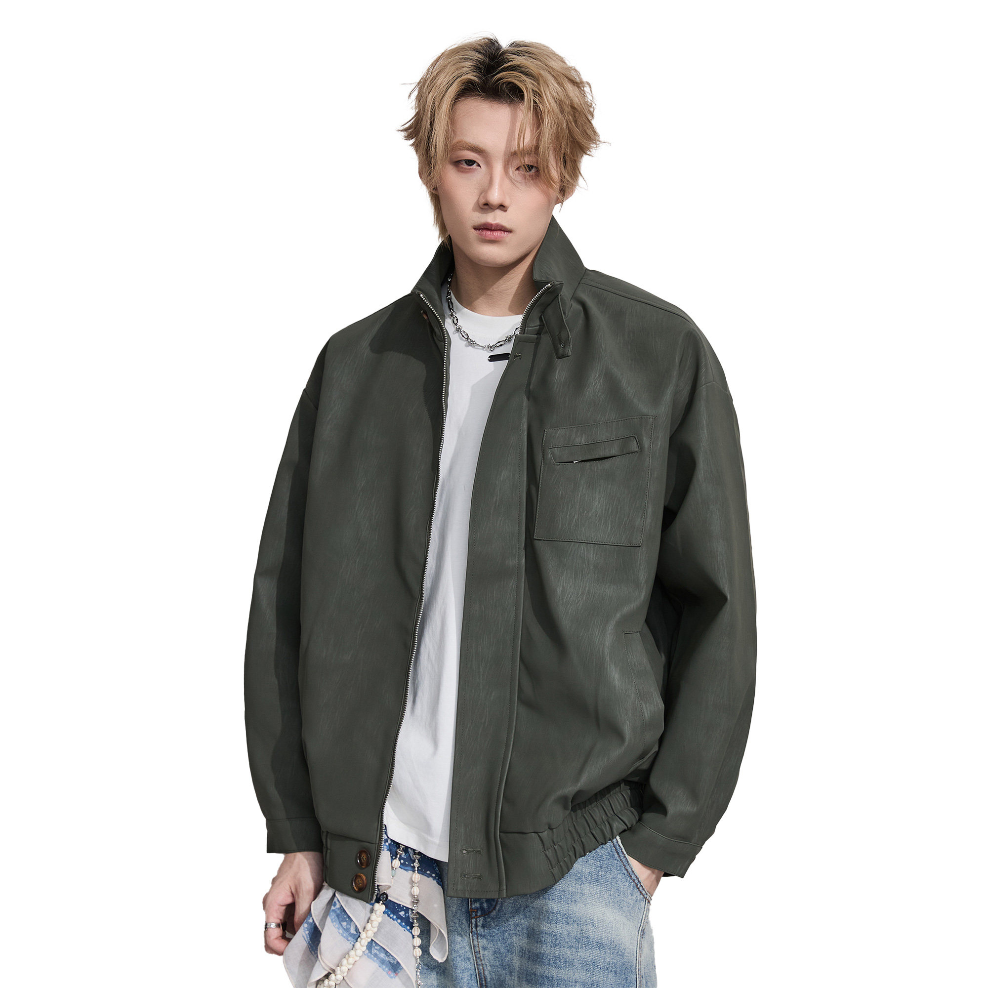 ALLIN 美式骑行机车PU皮衣外套男秋冬季复古休闲立领宽松情侣夹克