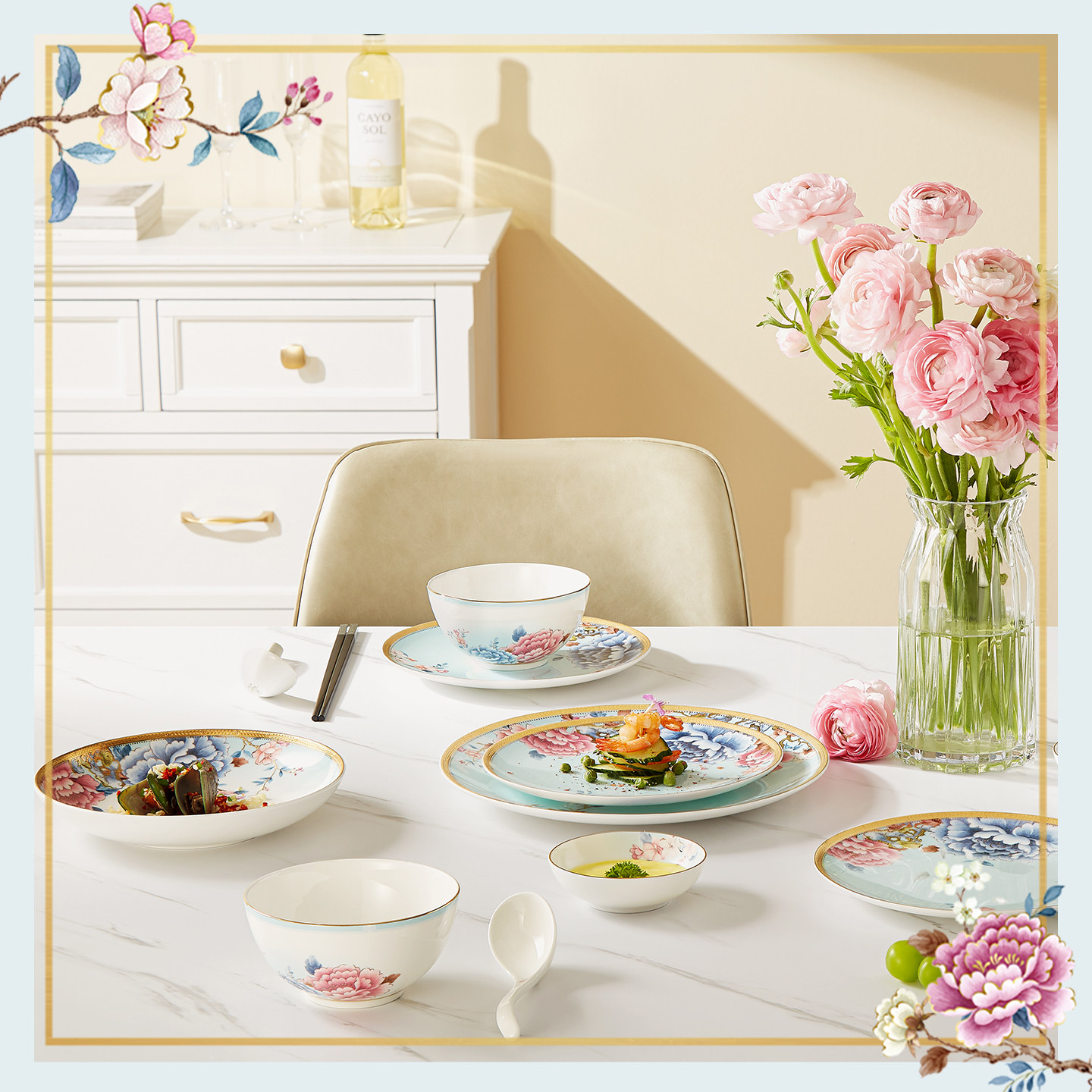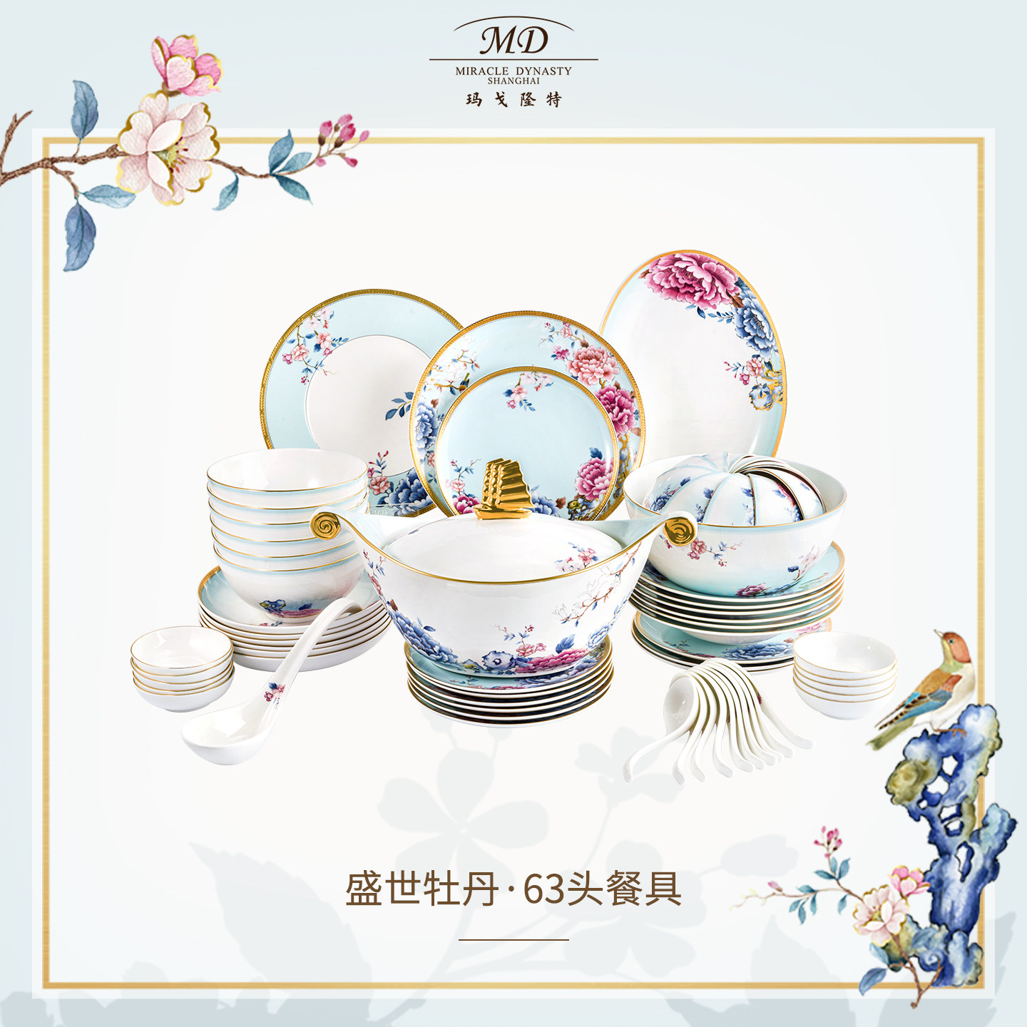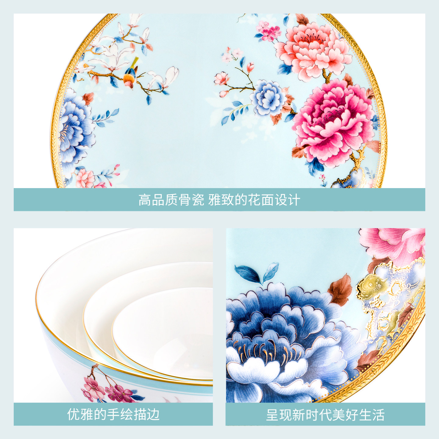 玛戈隆特盛世牡丹家用餐具骨瓷套装高级感轻奢精致饭碗盘结婚礼物