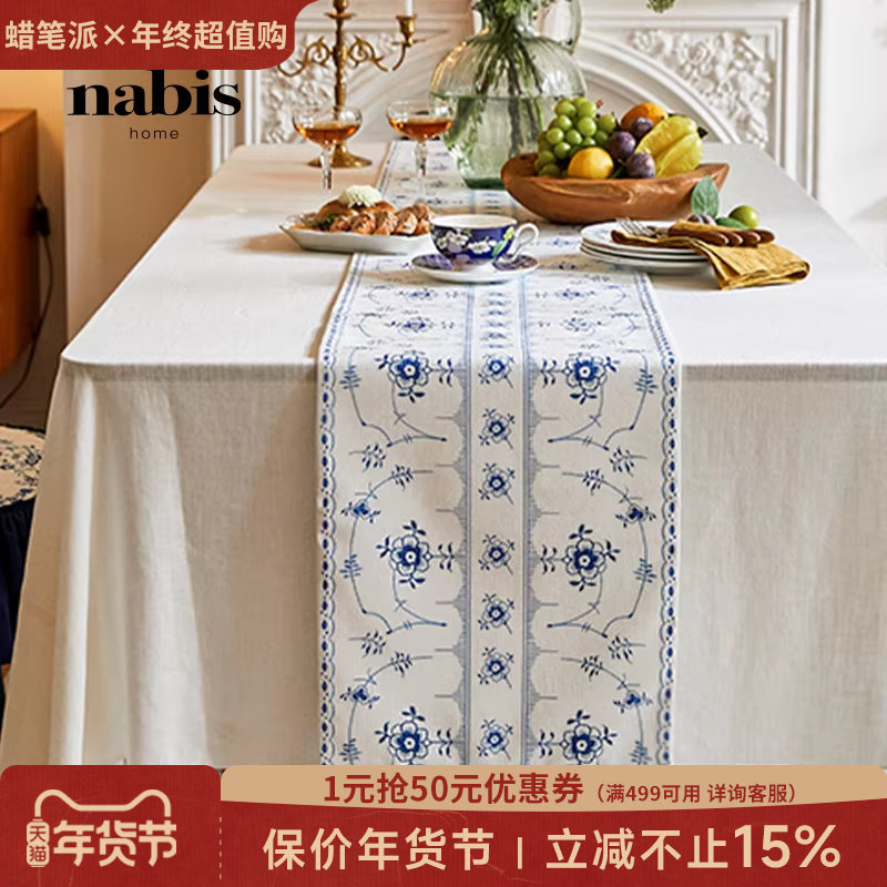 蜡笔派花朝白露桌旗法式复古防水餐桌台布氛围感长条盖布定制