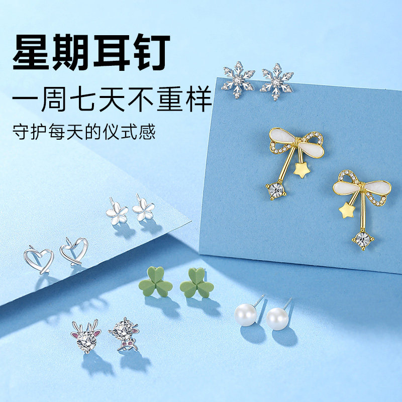 一周耳丁纯银耳钉高档小众耳饰百搭耳环S925轻奢高级感生日礼物