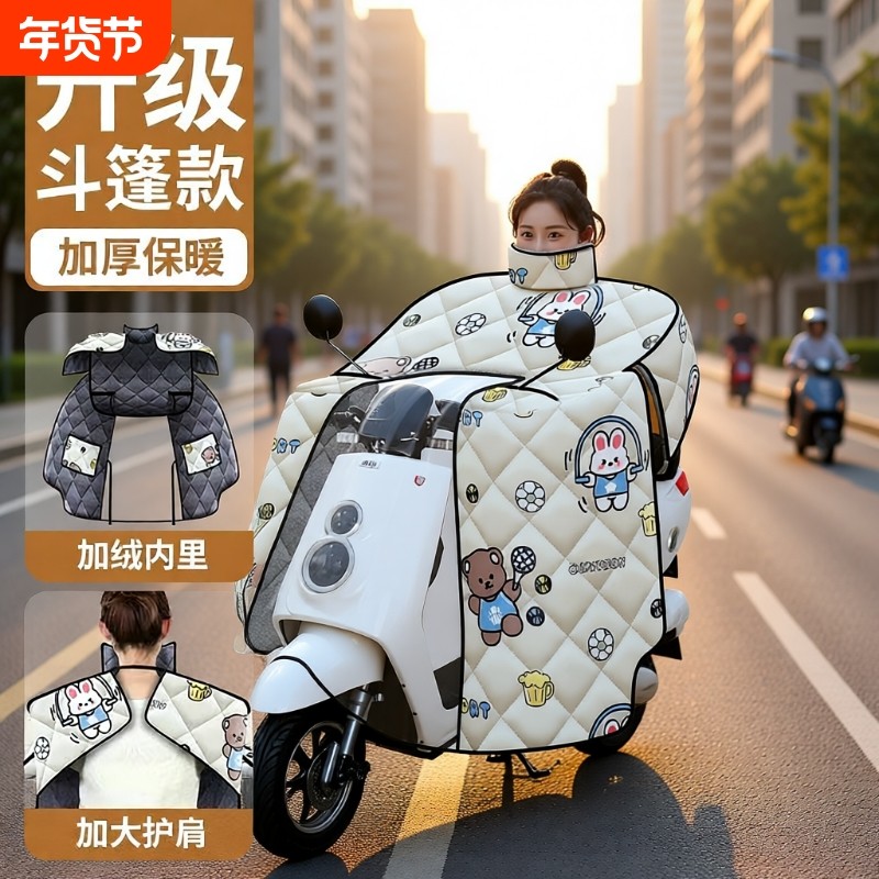 斗篷式电动车挡风被电瓶车防寒冬季加厚加绒保暖防风罩全包围新款