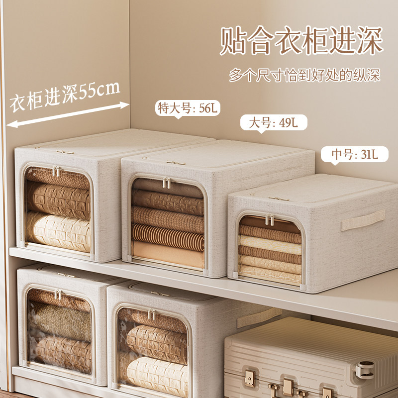 佳帮手衣服收纳箱家用装衣物被子百纳箱布艺可视窗衣柜专用整理箱