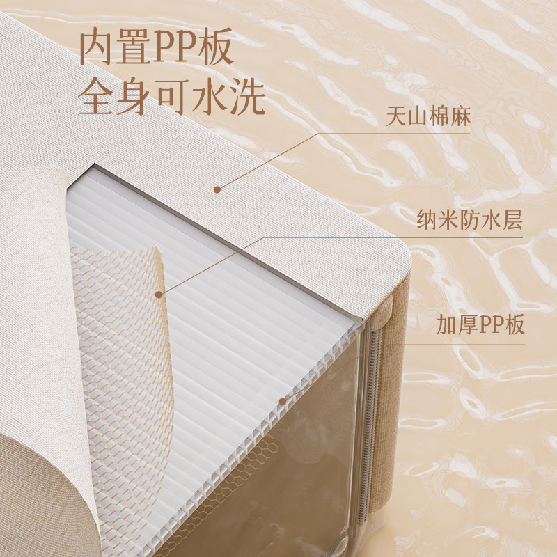 天山棉麻收纳筐衣柜收纳整理分层神器PP板可水洗衣服储物盒收纳箱