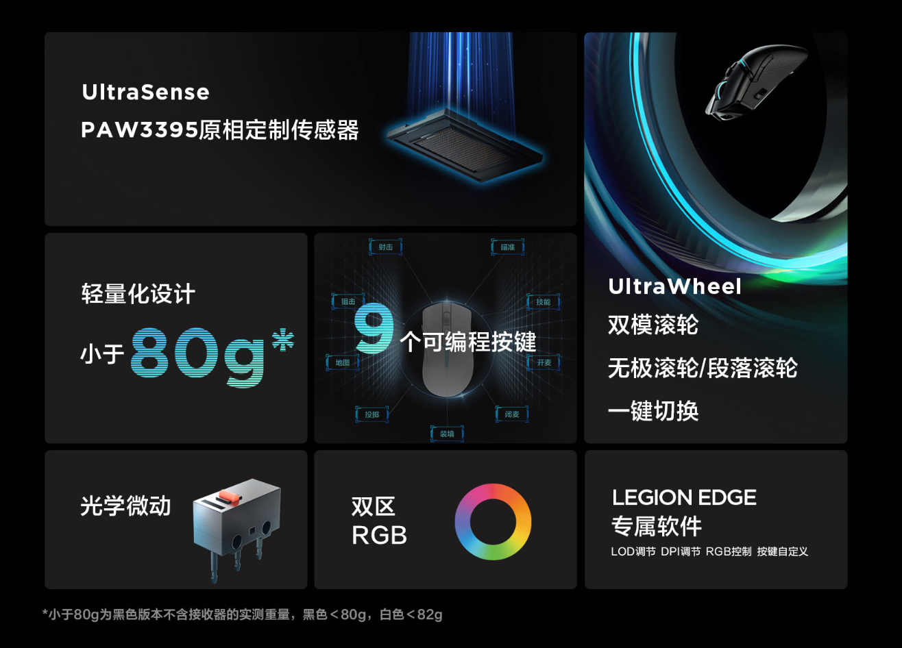 联想拯救者M7游戏畅玩黑神话悟空笔记本台机鼠标 三模电竞黑色